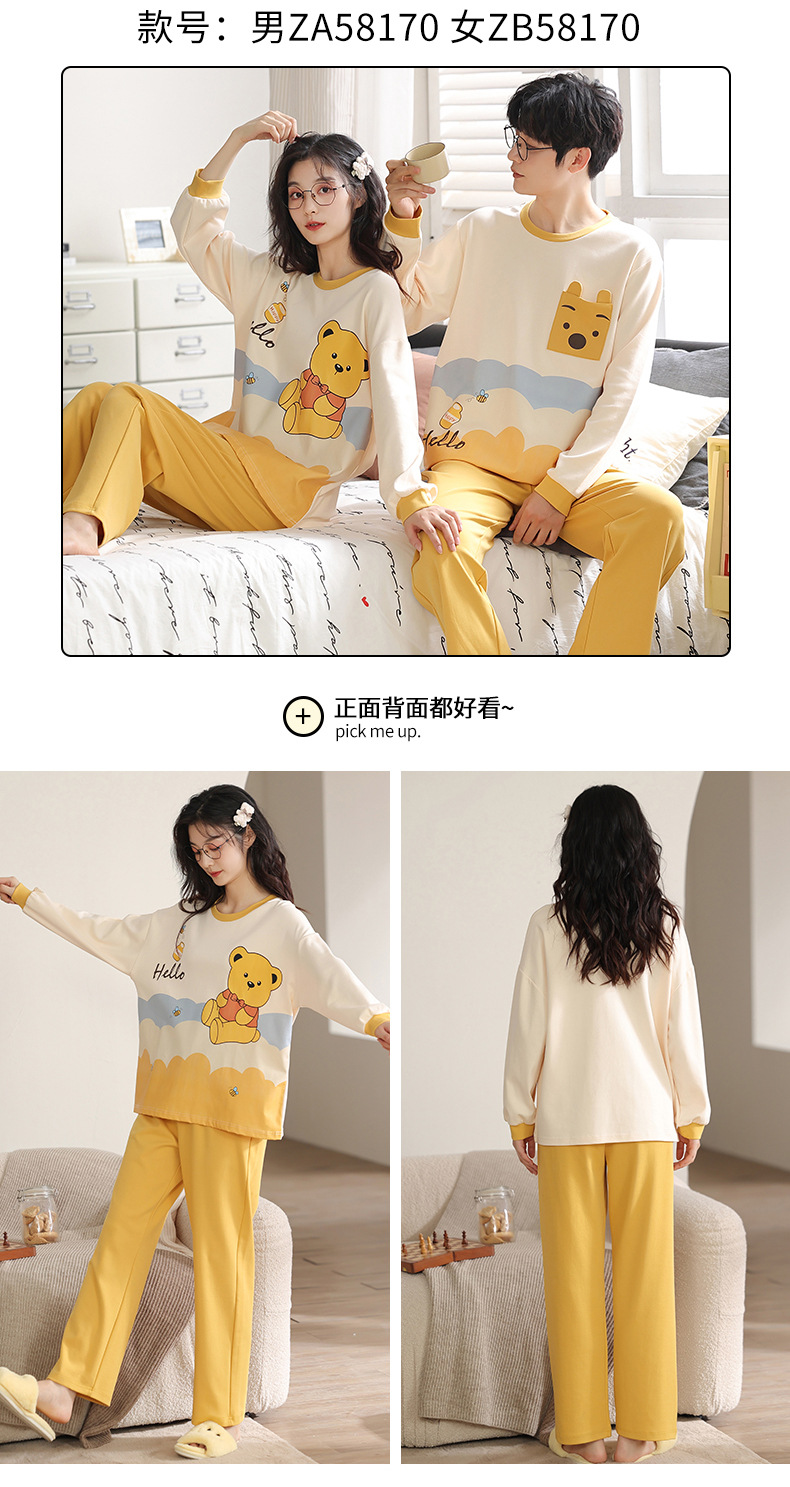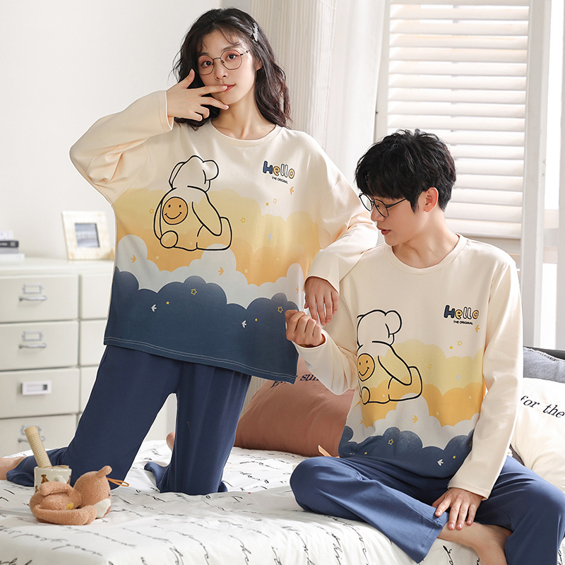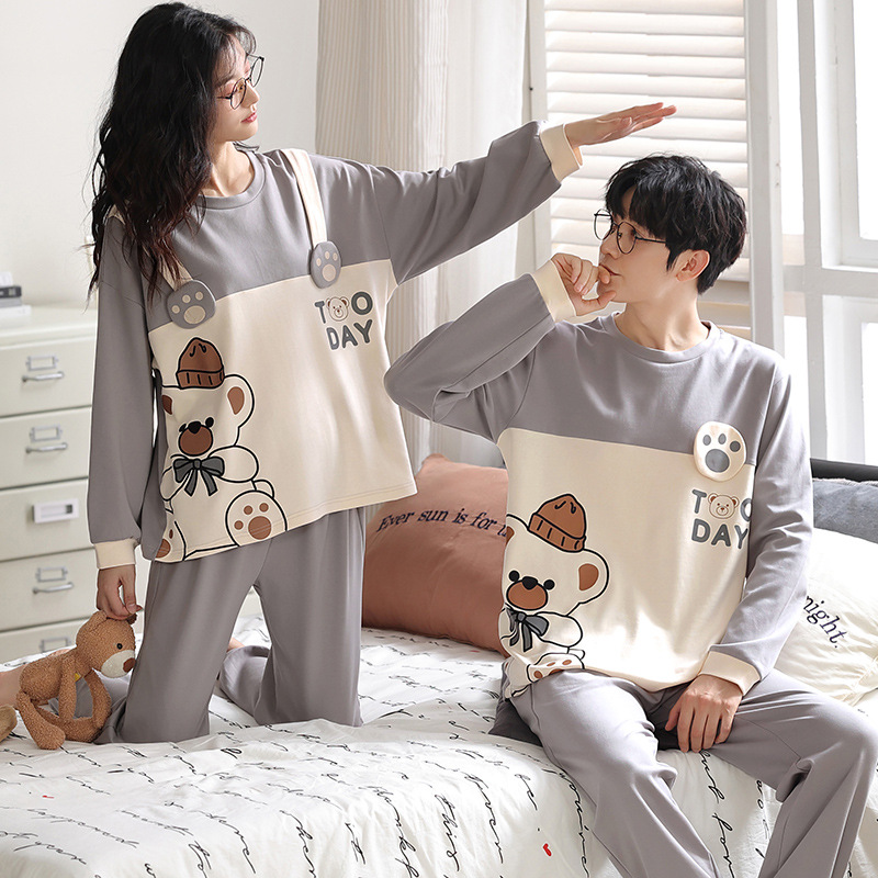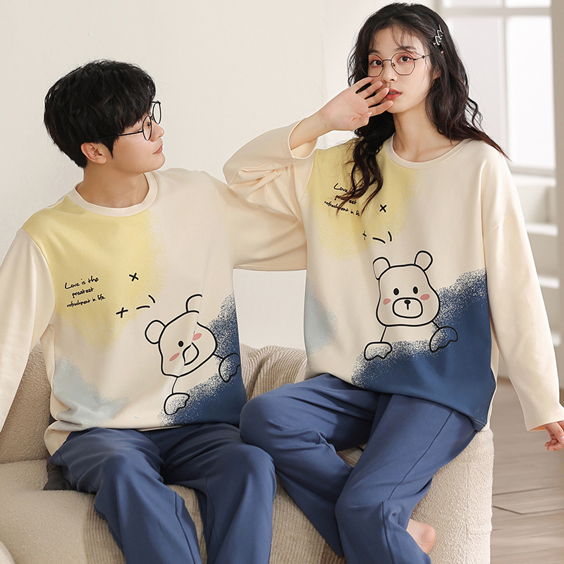 2024 봄 새 면 커플 잠옷 새 겨울 긴 소매 소년 캐주얼 얇은 여성 홈 옷스토어 가기