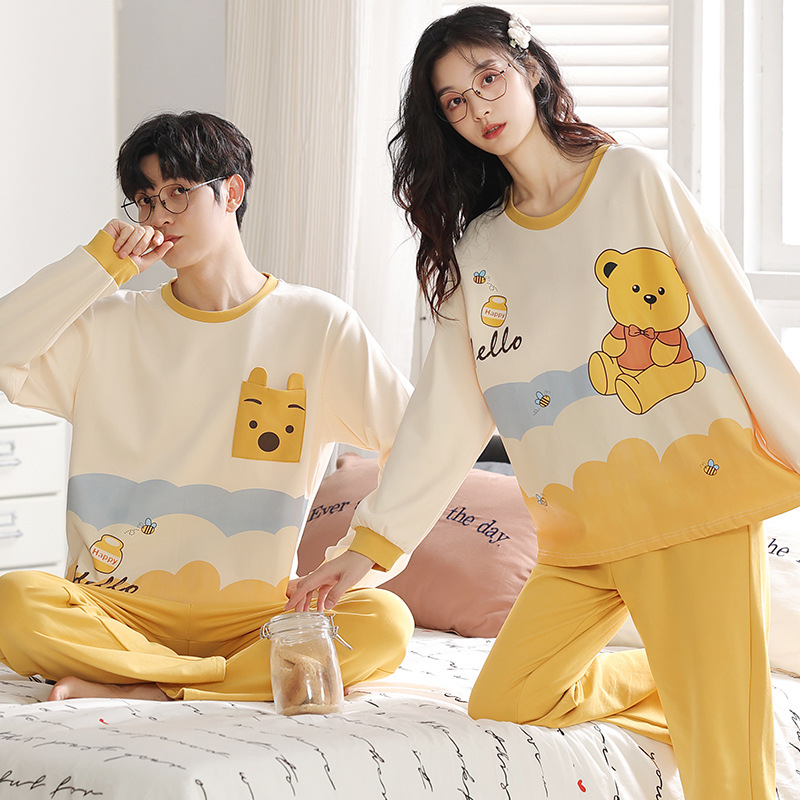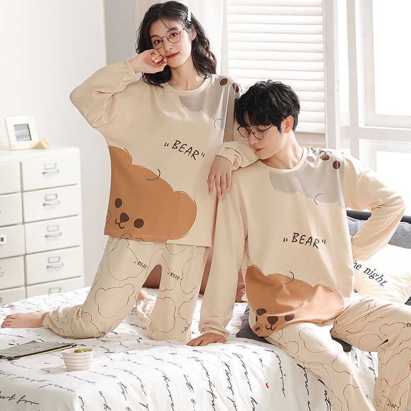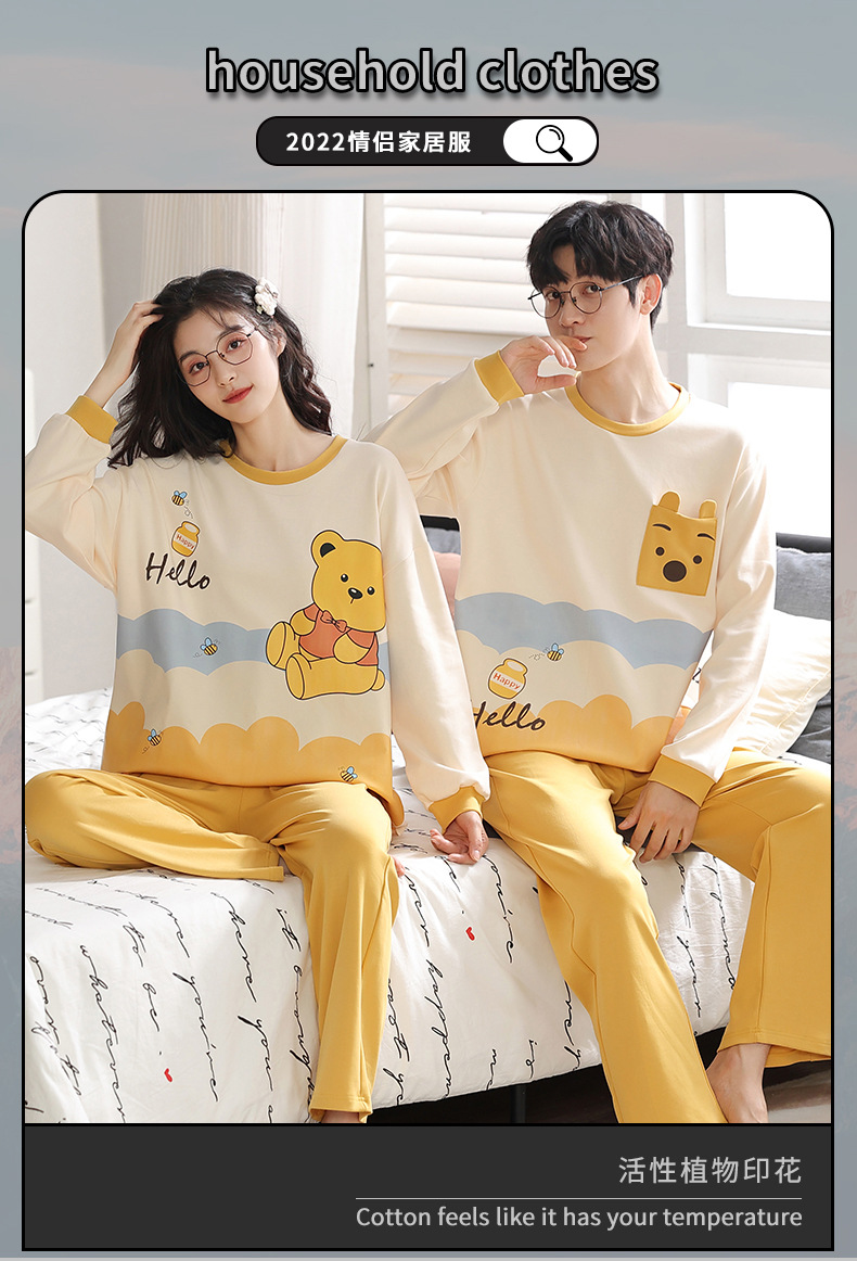 2024 봄 새 면 커플 잠옷 새 겨울 긴 소매 소년 캐주얼 얇은 여성 홈 옷