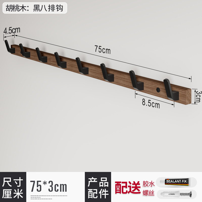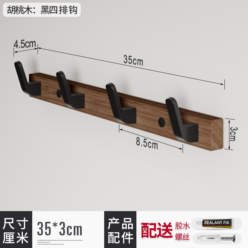 단단한 나무 문 후면 후크 블랙 호두 후크 코트 후크 벽 장식 침실 피팅 룸 펀치 프리 후크