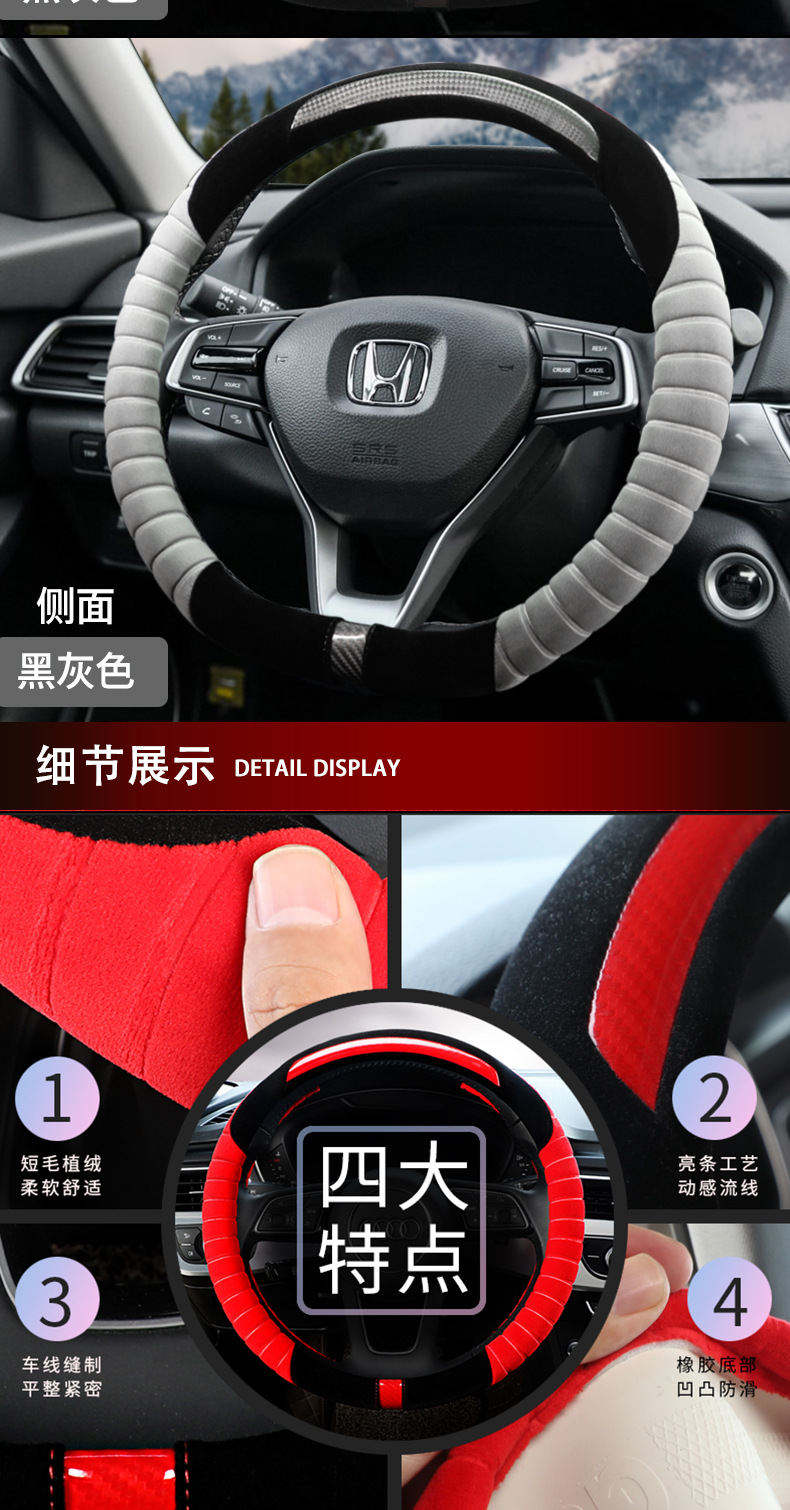짧은 플러시 스티어링 휠 커버가 좋은 차를 느낀다 Four Seasons 유니버설 핸들 커버 미끄럼 방지 내마모성 땀 흡수 따뜻한 크로스 보더 전자 상거래스토어 가기