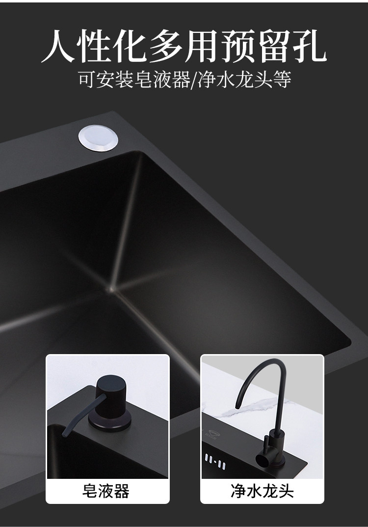 • 68*45 라운드 블랙 수도꼭지 + 비누 디스펜서