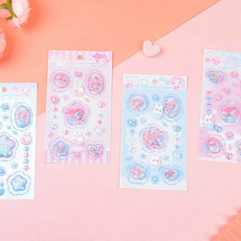 크림 젖빛 쉐이크 라인 석 스티커 어린이 쉐이크 워터 스티커 만화 소녀 보상 3b 다이아몬드 스테레오 스티커스토어 가기