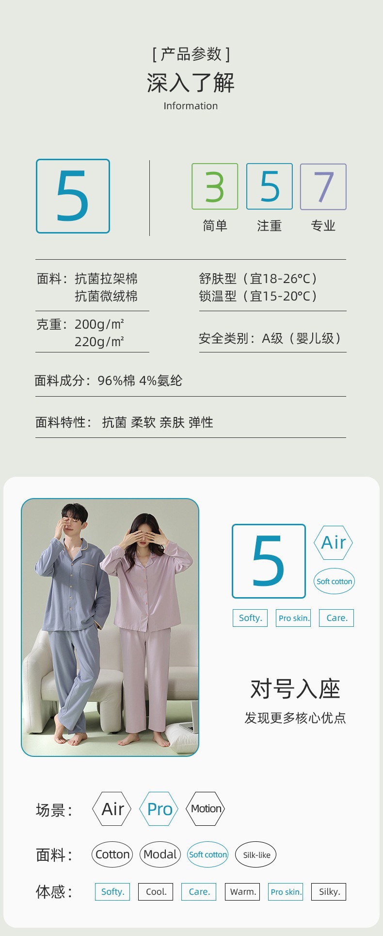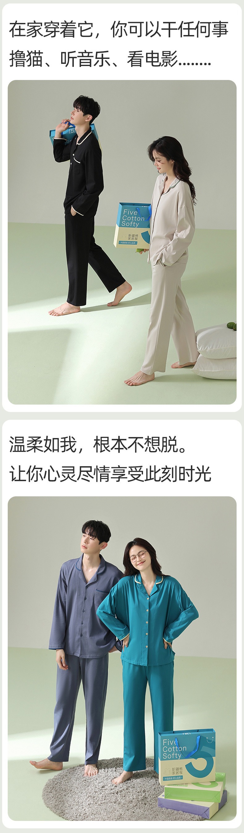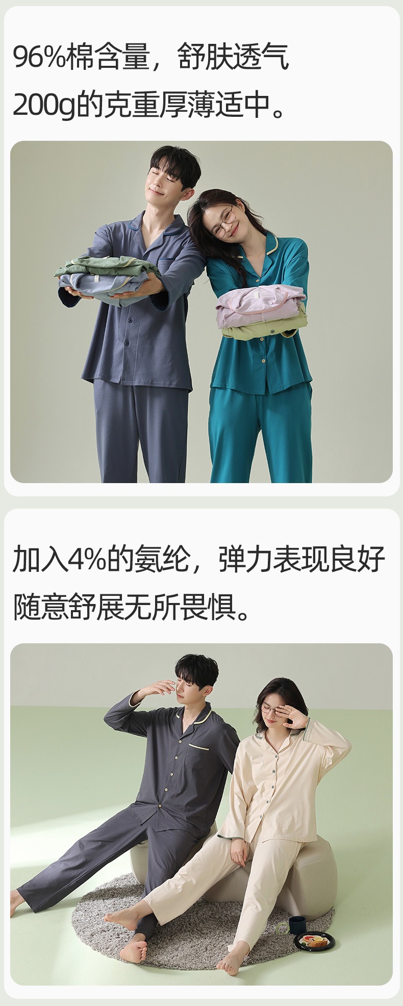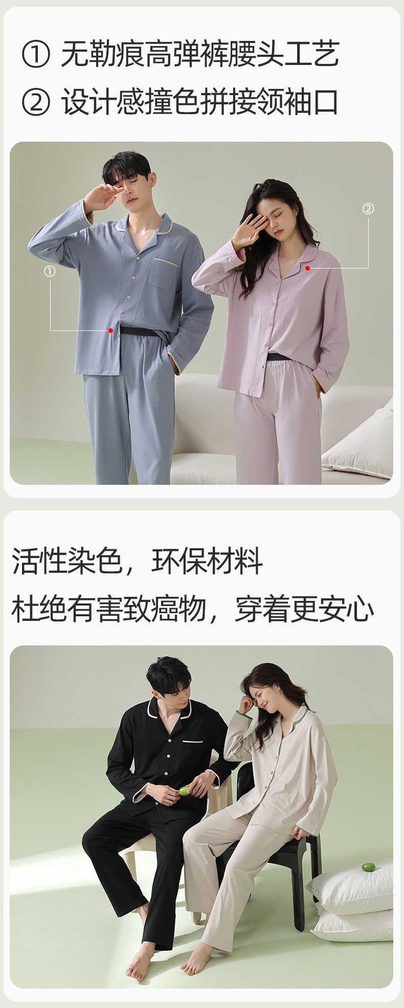 [항균면] 클래스 A 안티 진드기 항균 커플 잠옷 봄과 가을 잠옷 여성면 남성 홈 의류 세트스토어 가기
