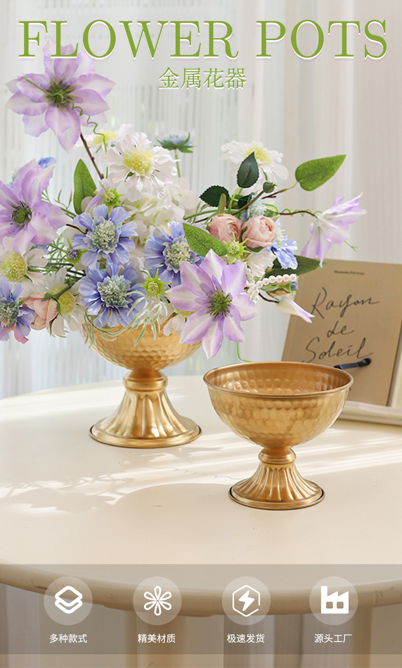 유럽 복고풍 금속 단철 꽃 병 꽃병 빈티지 오래 된 결혼식 연회 장식 도매
