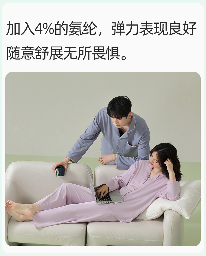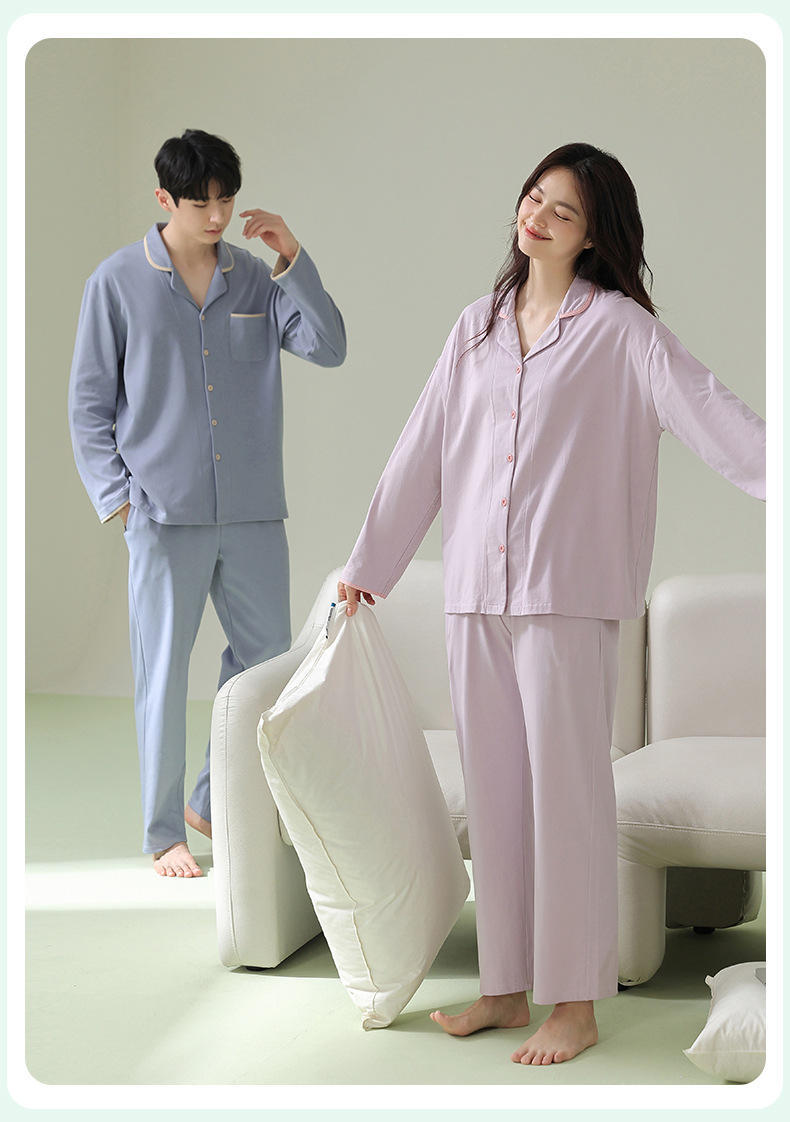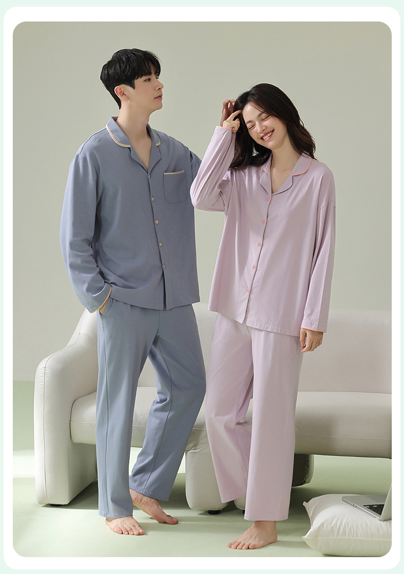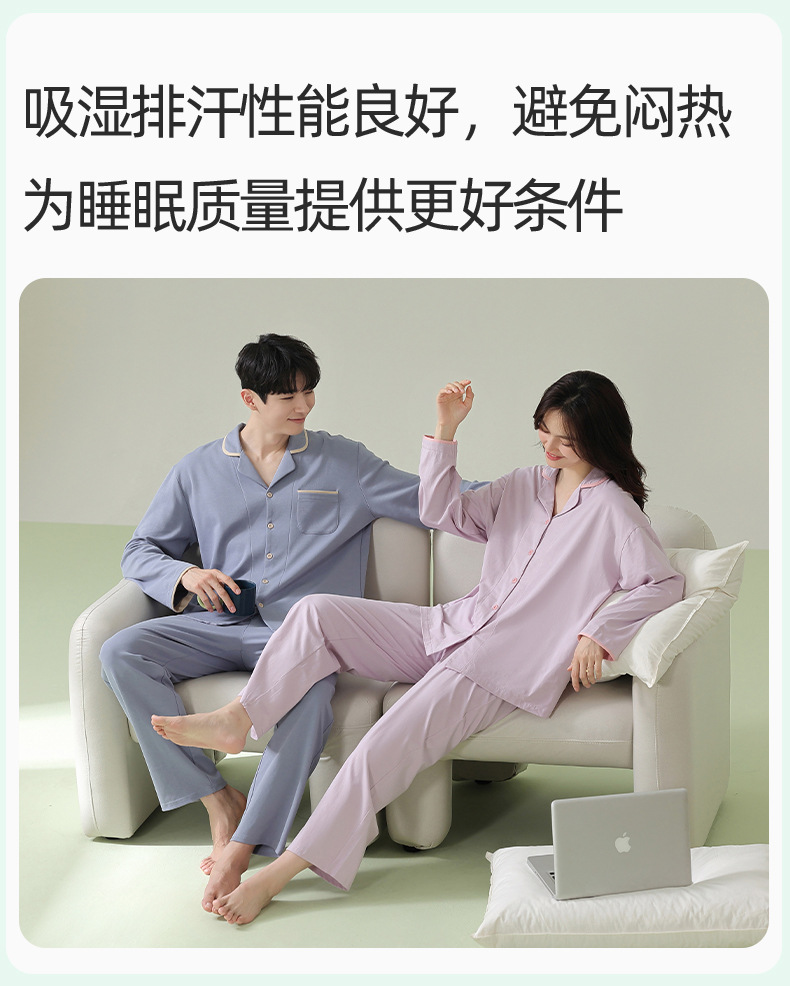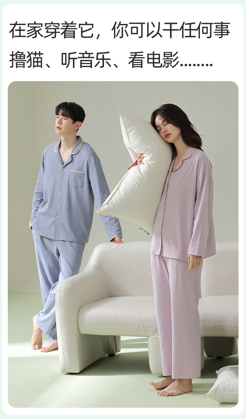 [항균면] 클래스 A 안티 진드기 항균 커플 잠옷 봄과 가을 잠옷 여성면 남성 홈 의류 세트스토어 가기