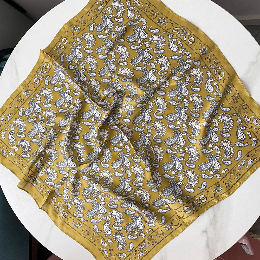 빈티지 아트 스퀘어 스카프 70x70cm 여성용 스카프 캐주얼 새틴 스카프 캐슈 프린트 스카프 헤어 벨트