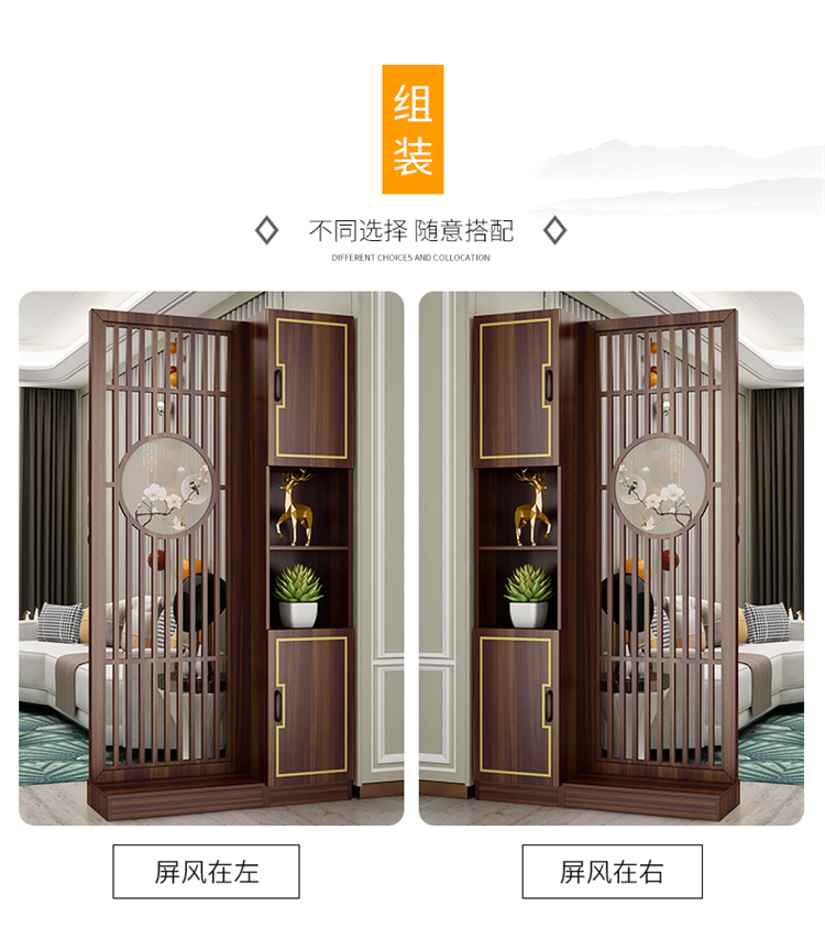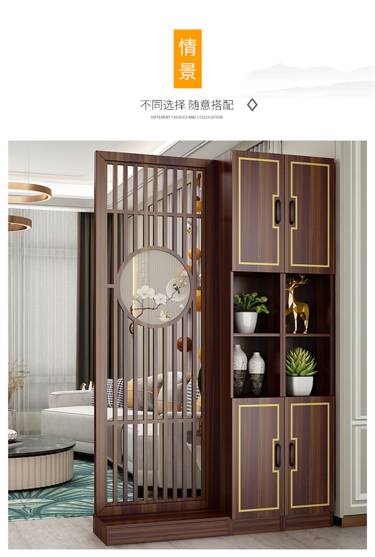 거실 새로운 중국식 스크린 파티션 장식 벽 음영 단단한 나무 스토리지 랙 중공 현대 조명 럭셔리 입구 캐비닛스토어 가기