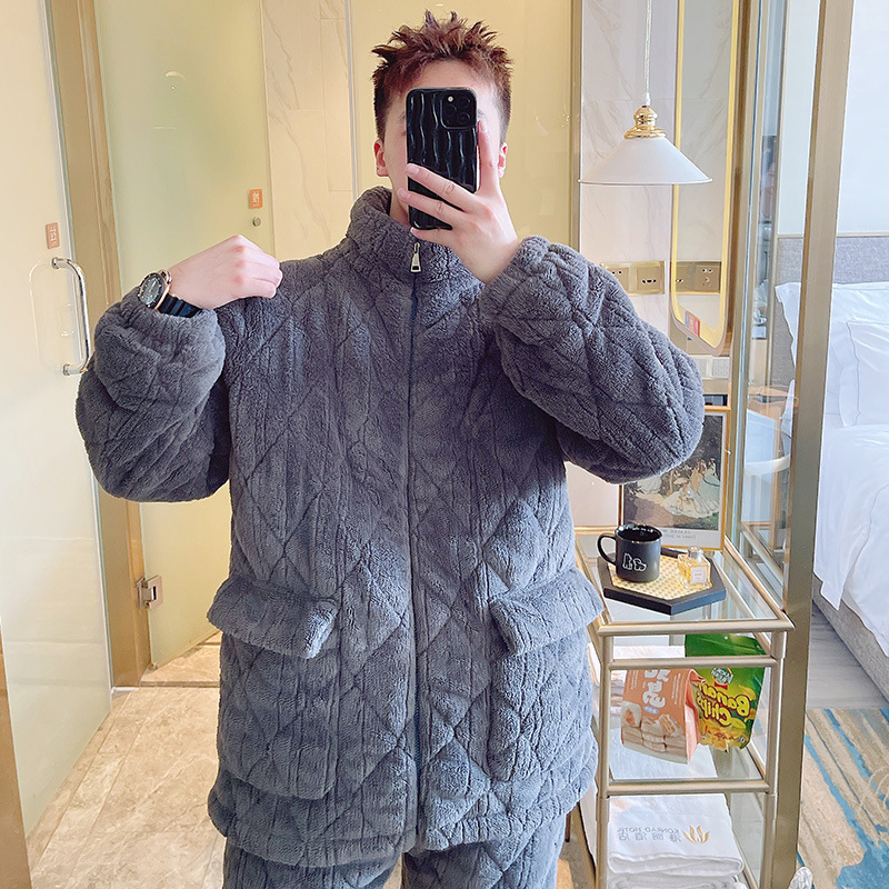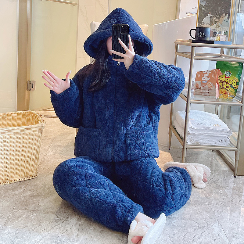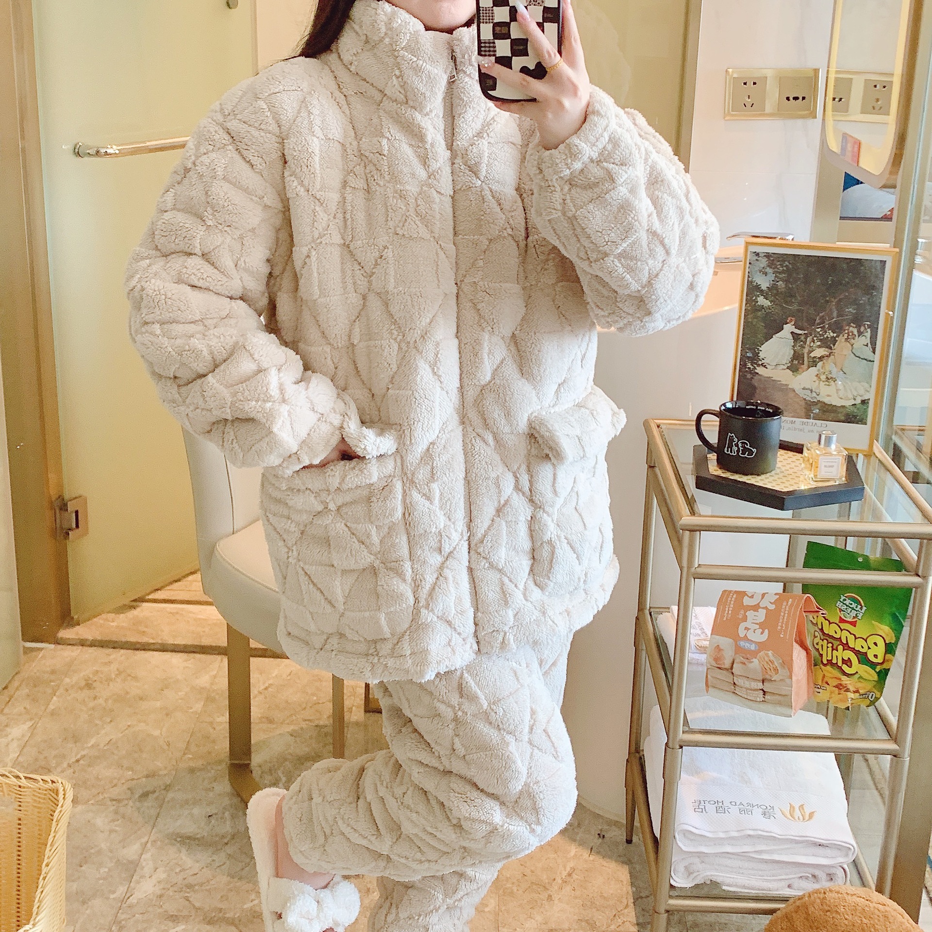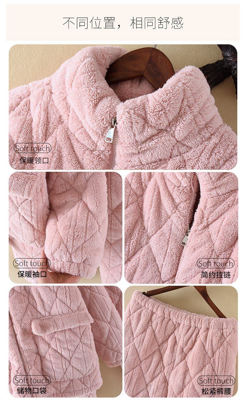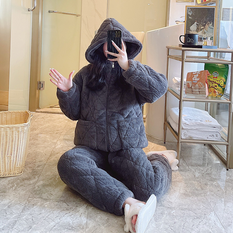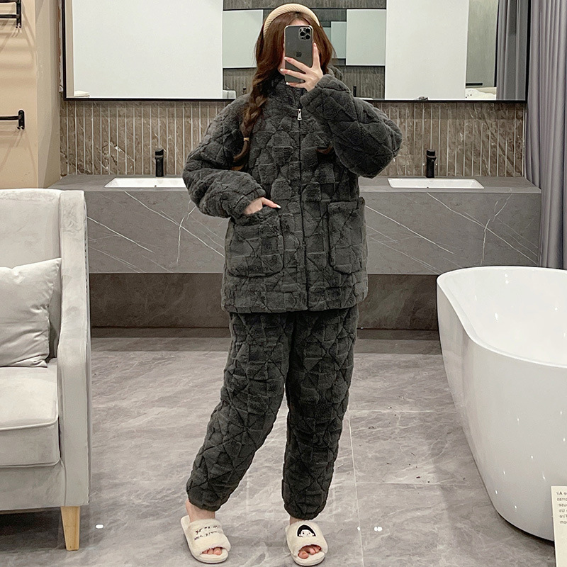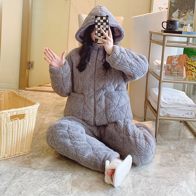 플러스 사이즈 파자마 여성의 가을과 겨울 두꺼운 3 층 코튼 두꺼운 외부 착용 홈웨어 플란넬 세트 핑크스토어 가기