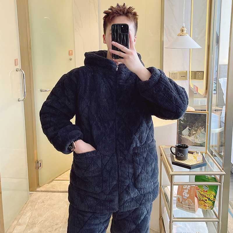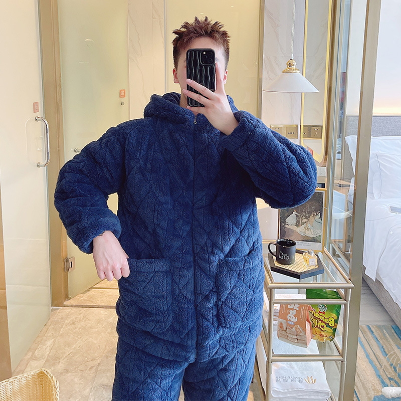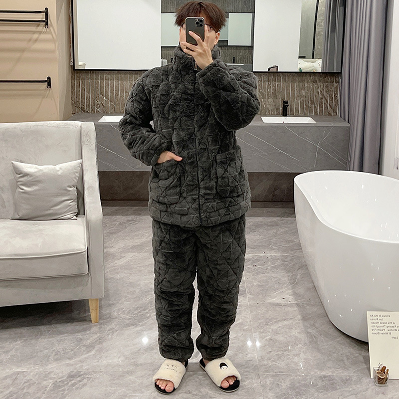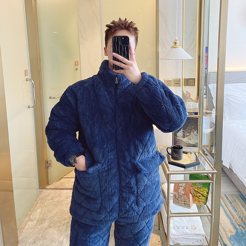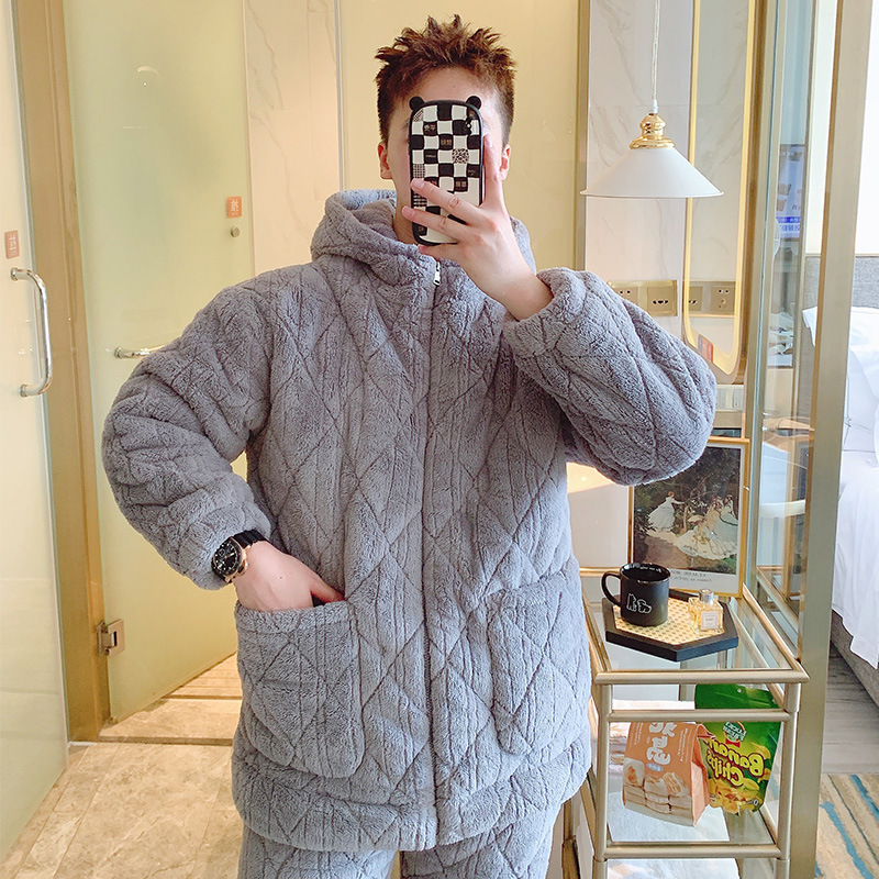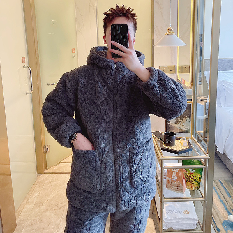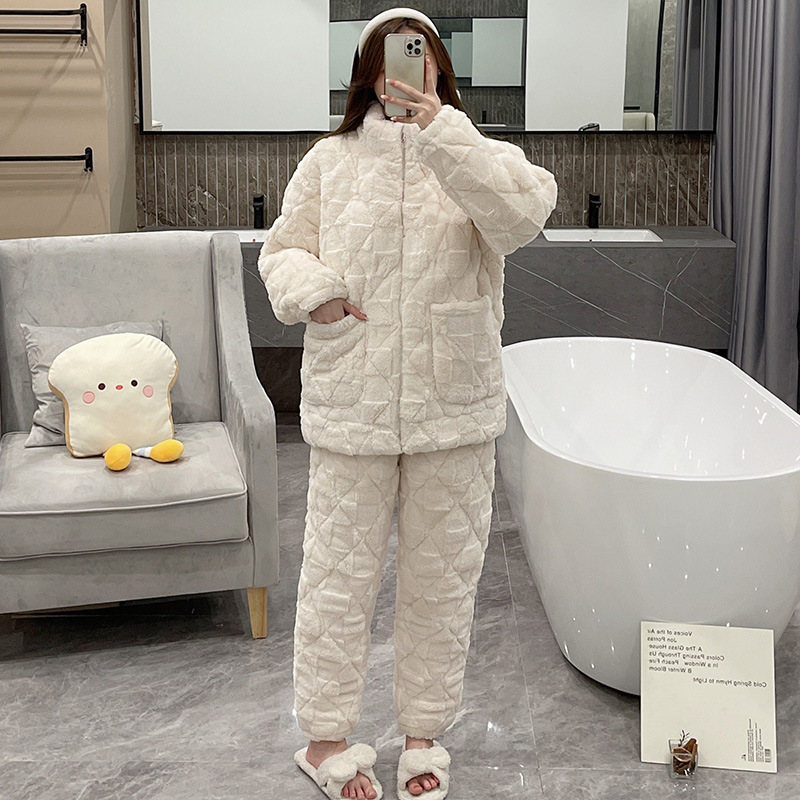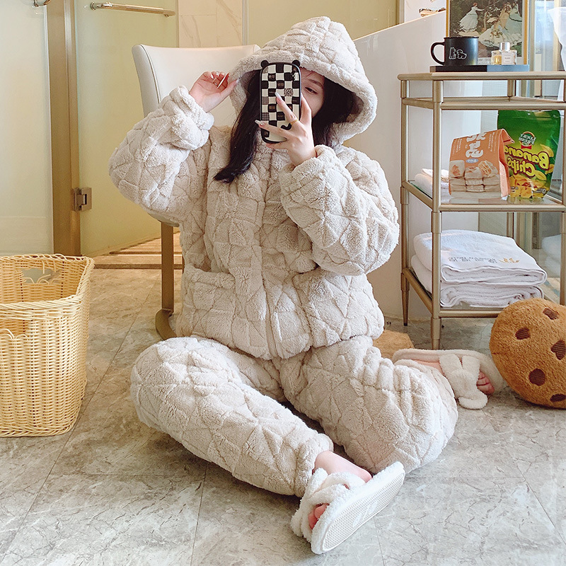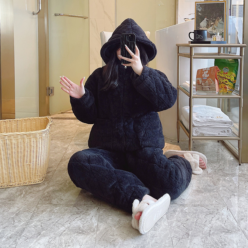 플러스 사이즈 파자마 여성의 가을과 겨울 두꺼운 3 층 코튼 두꺼운 외부 착용 홈웨어 플란넬 세트 핑크스토어 가기