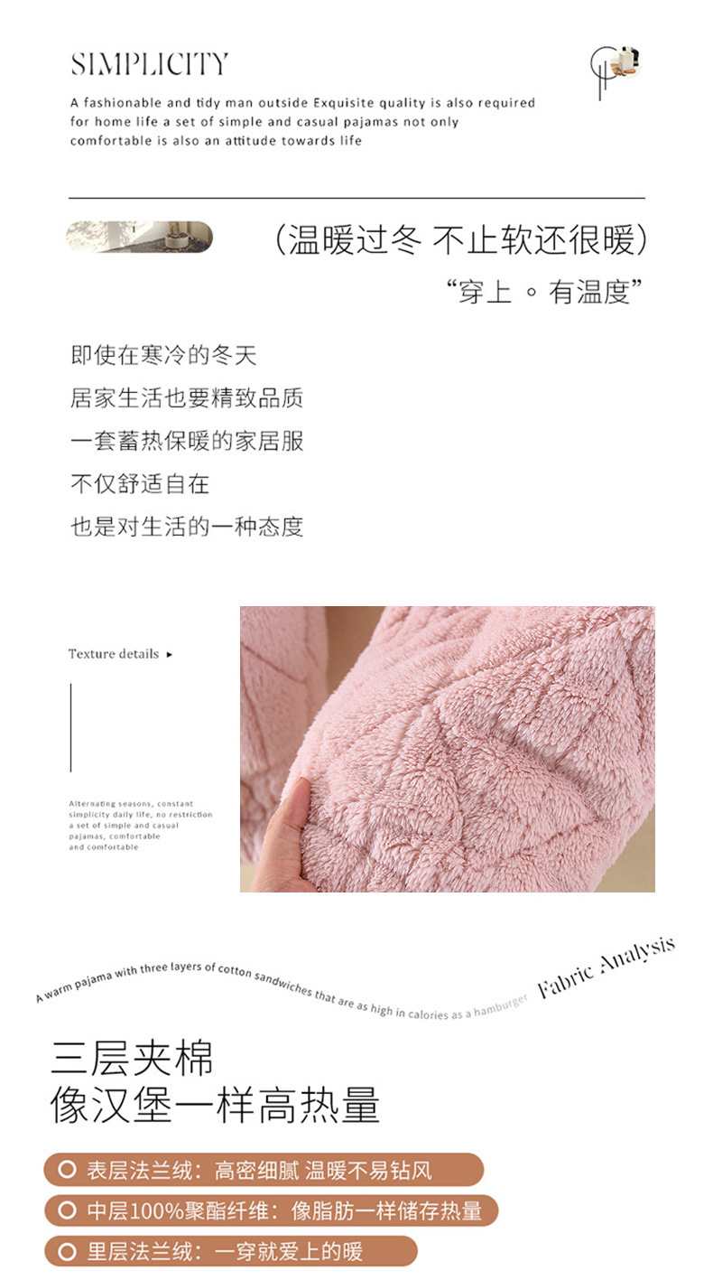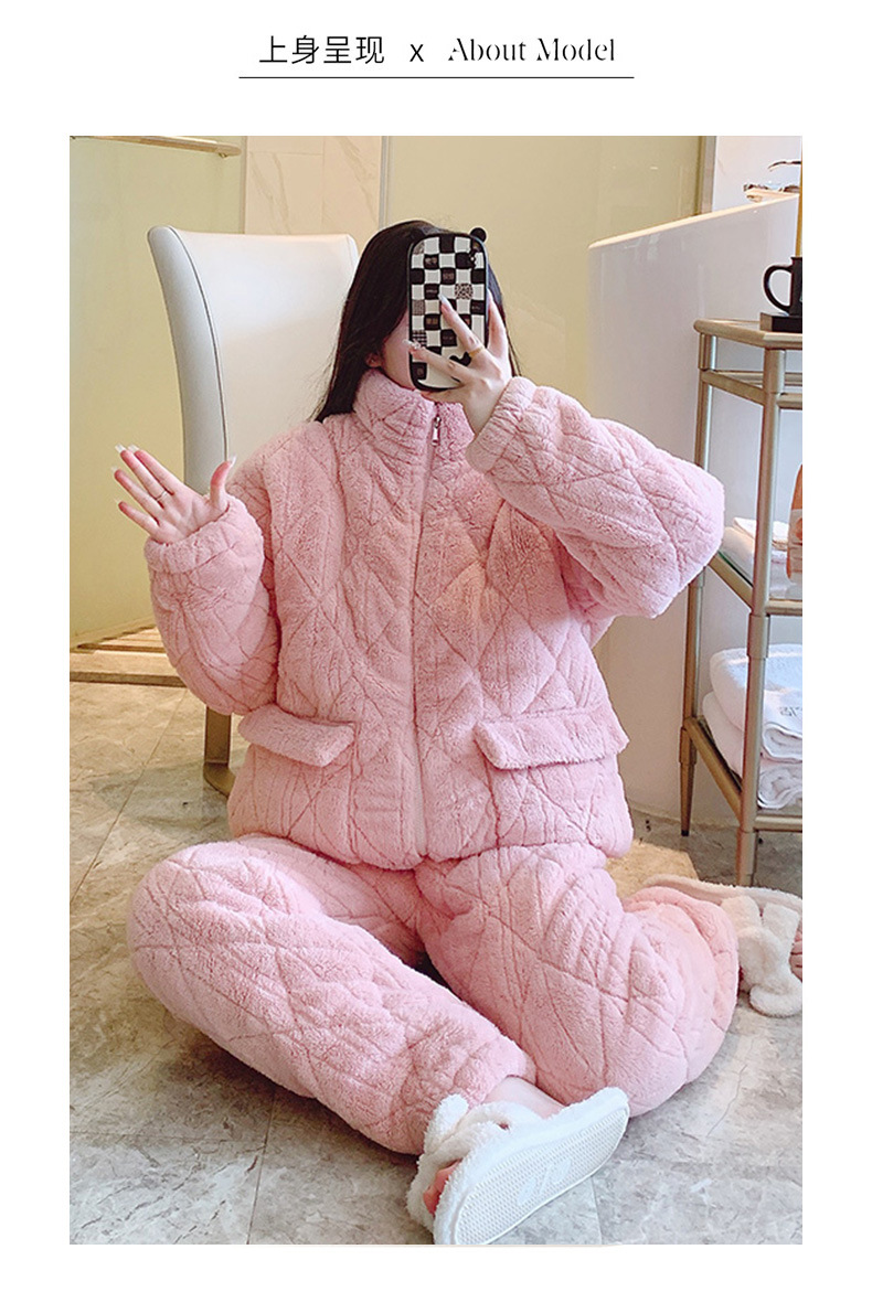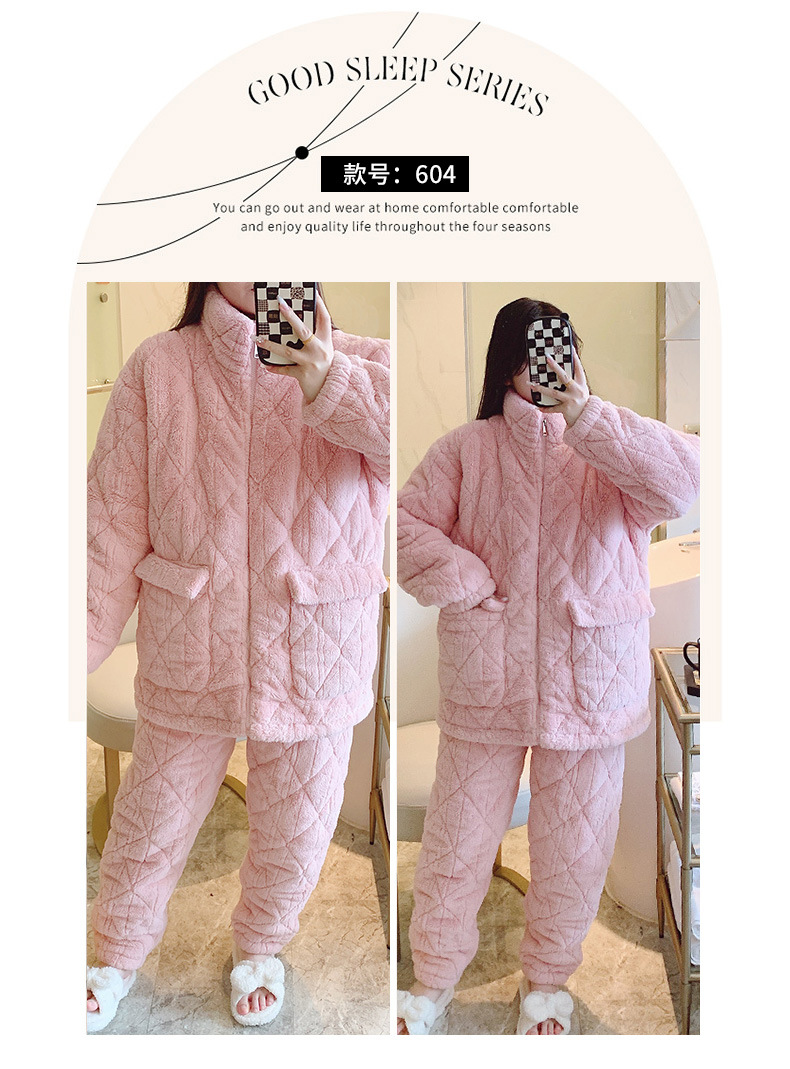 플러스 사이즈 파자마 여성의 가을과 겨울 두꺼운 3 층 코튼 두꺼운 외부 착용 홈웨어 플란넬 세트 핑크