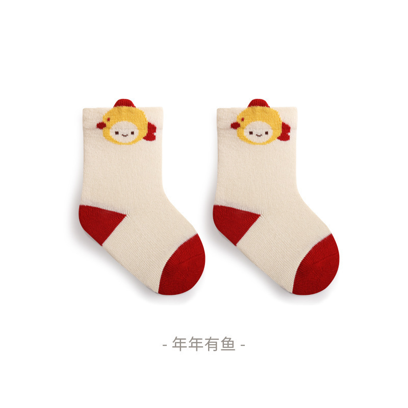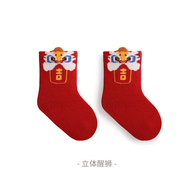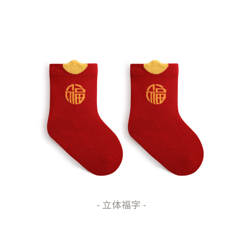 빨간 양말 가을과 겨울 새로운 1 세 새로운 백일 아기 양말 빗질면 통기성 신생아 양말 클래스 A스토어 가기