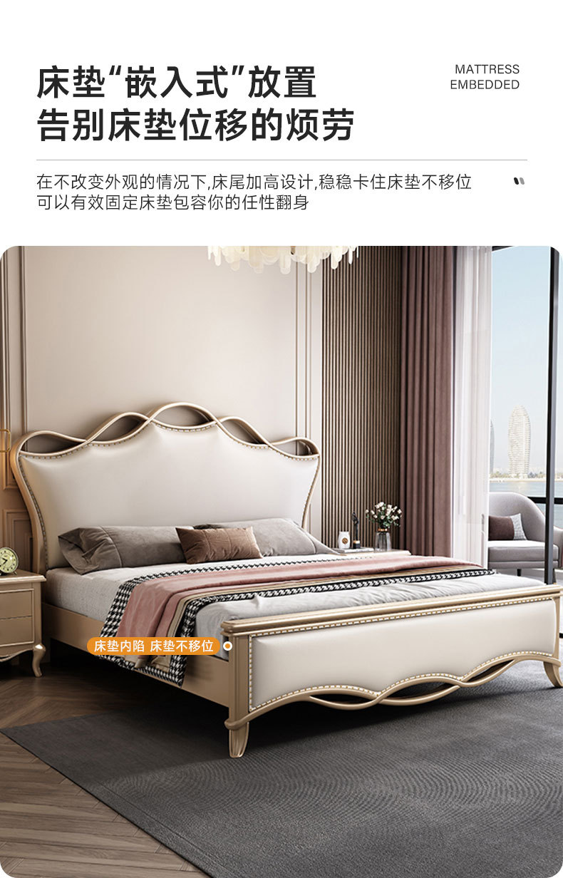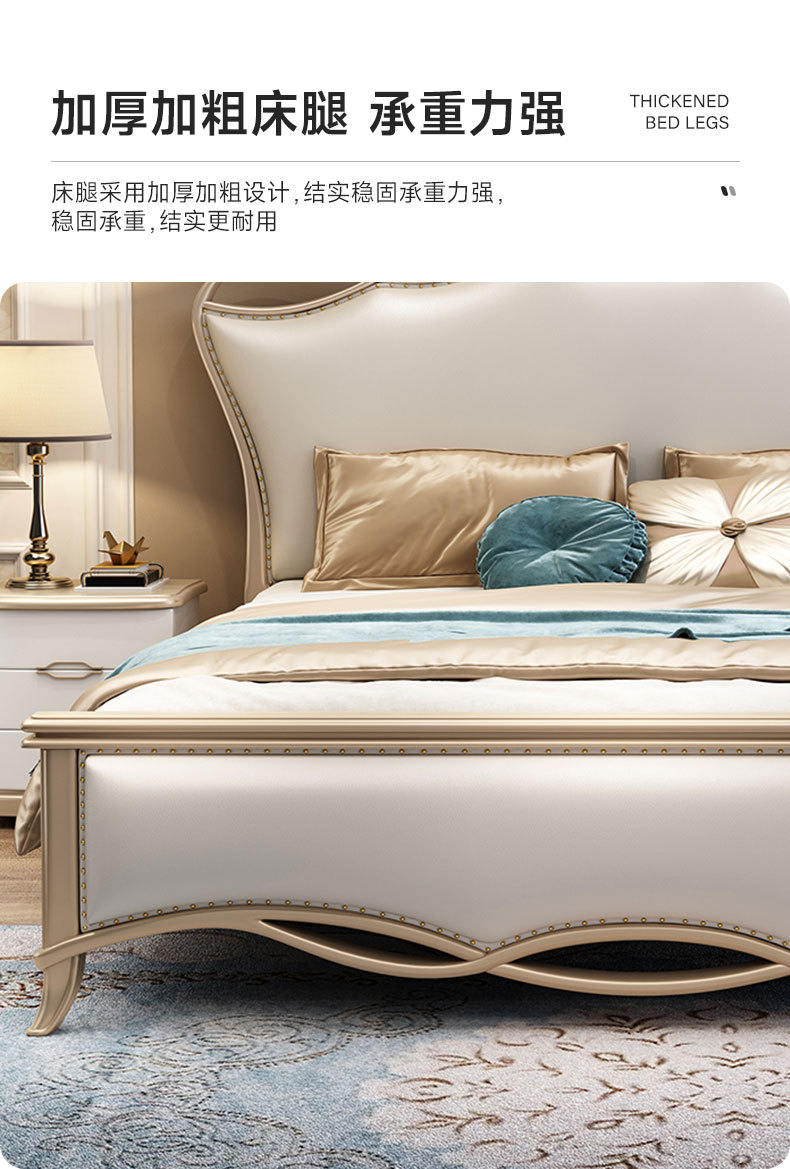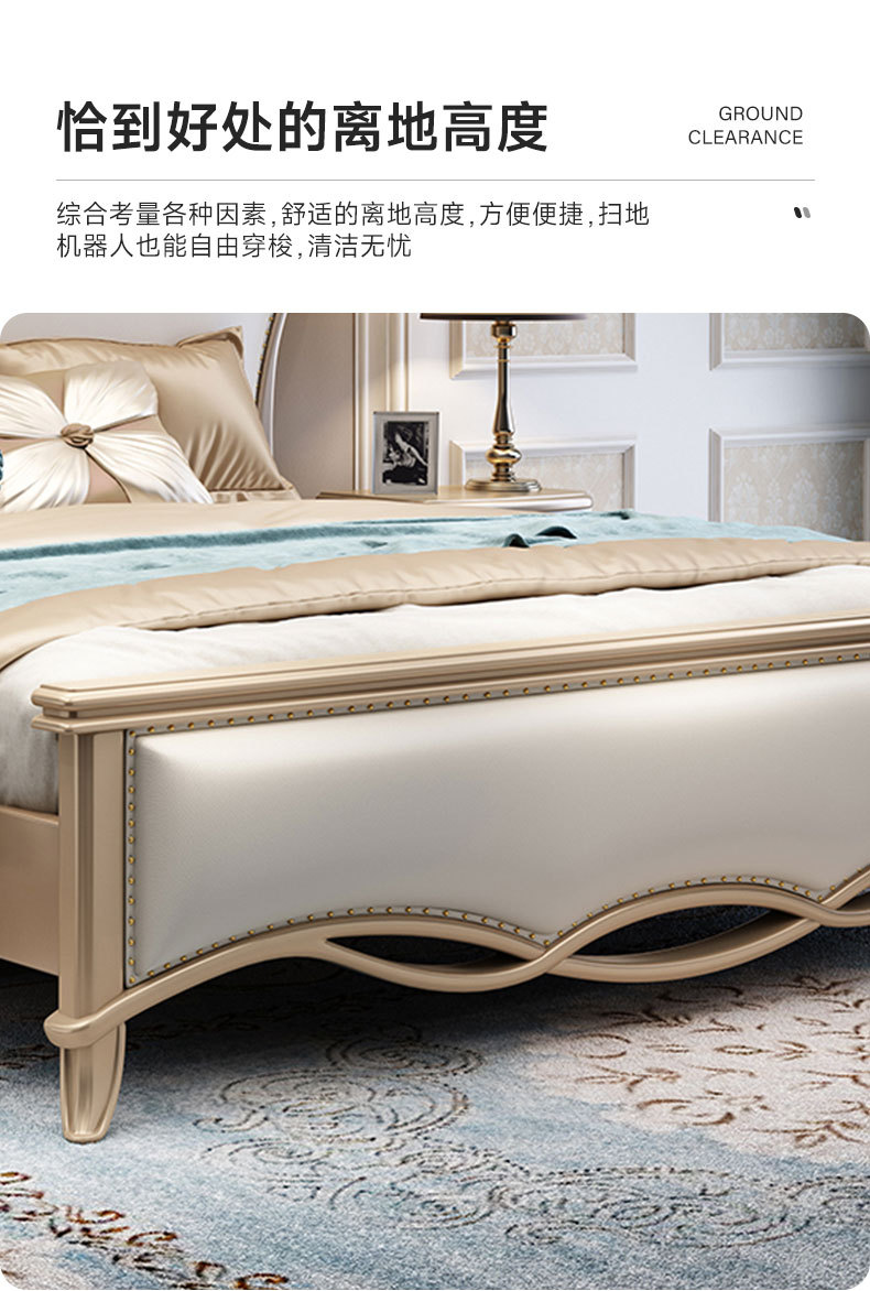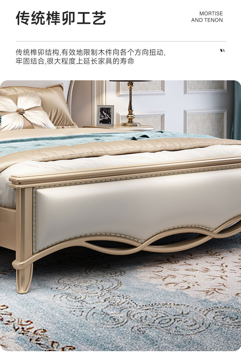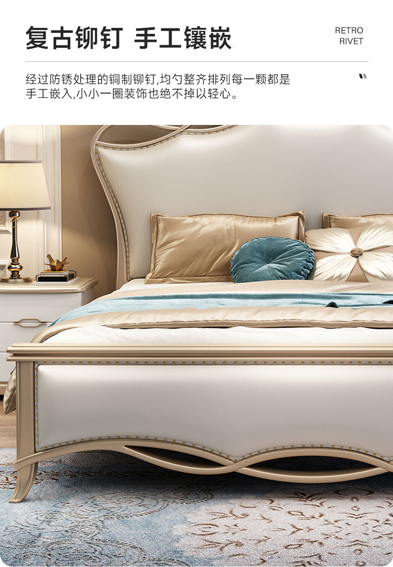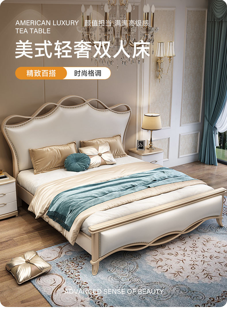 아메리칸 스타일 라이트 럭셔리 단단한 나무 침대 현대 간단한 마스터 침대 프랑스 크림 스타일 공주 침대 더블 침대 리본 침대 1.8M