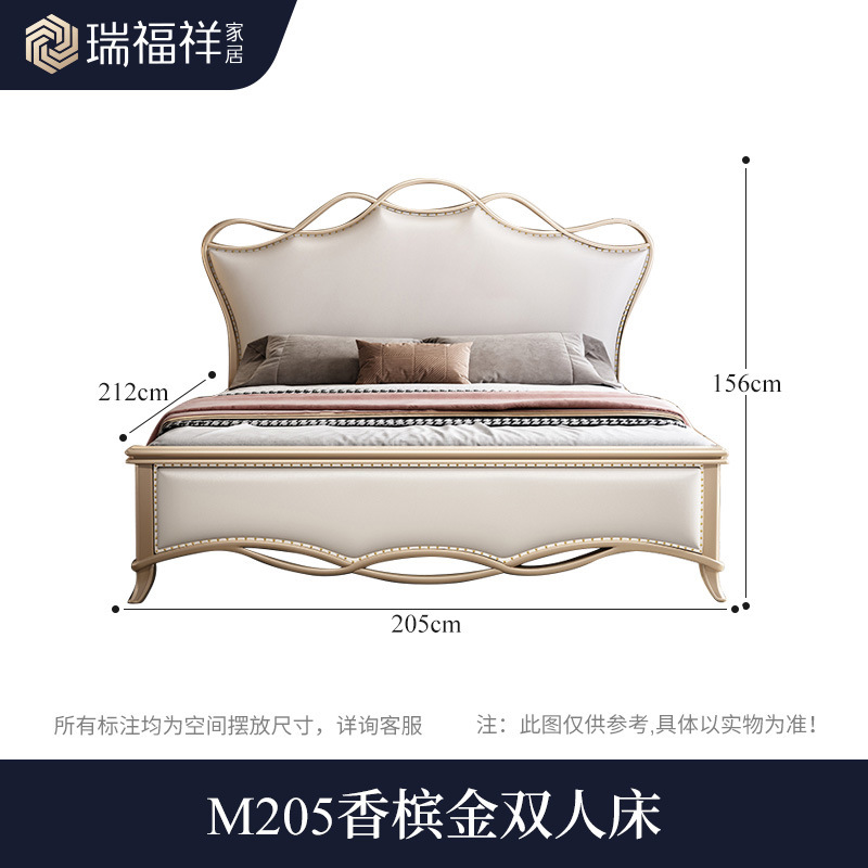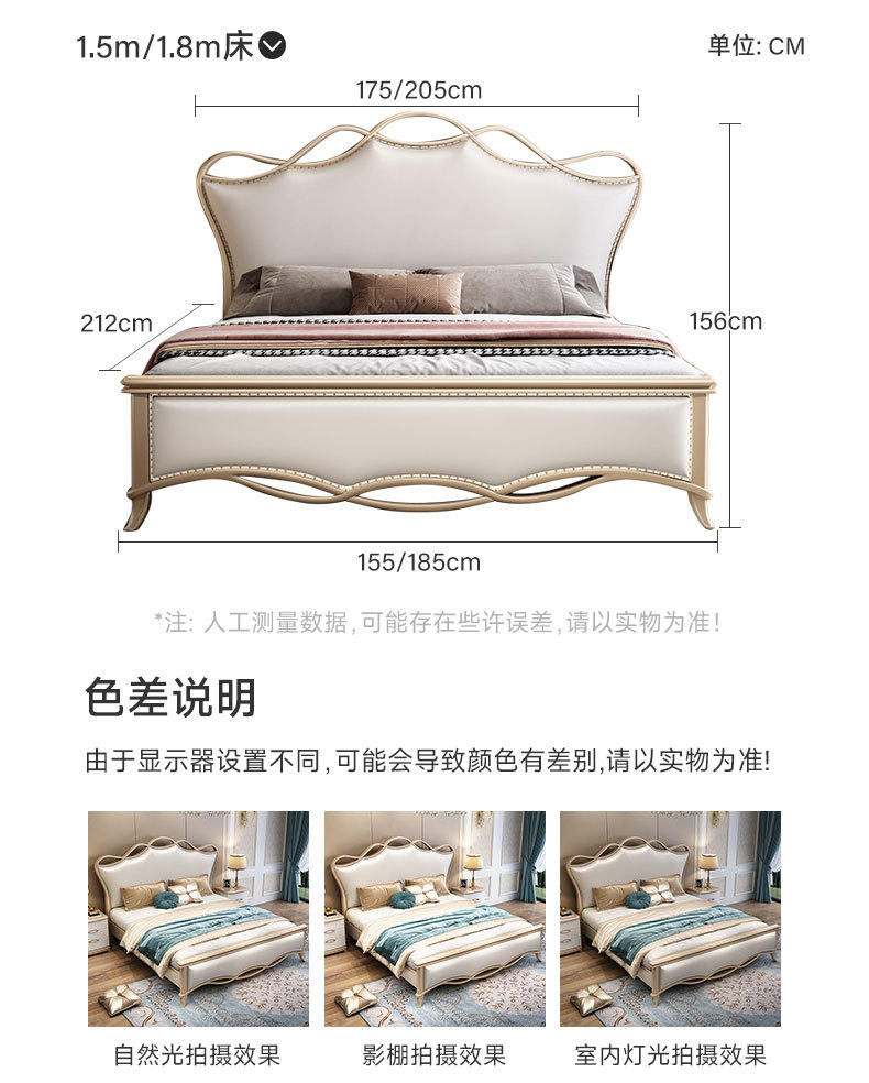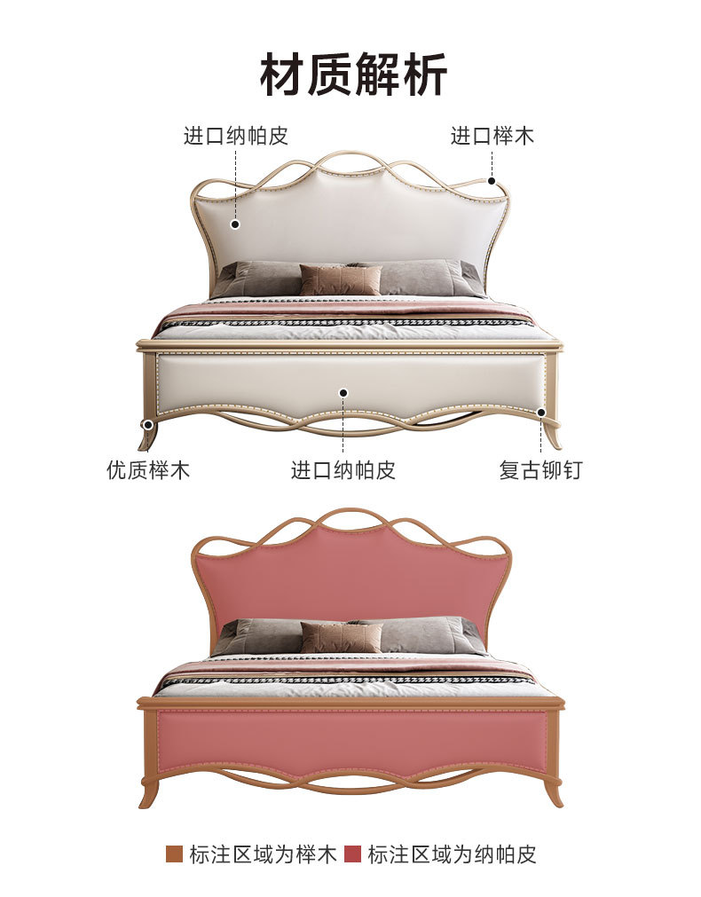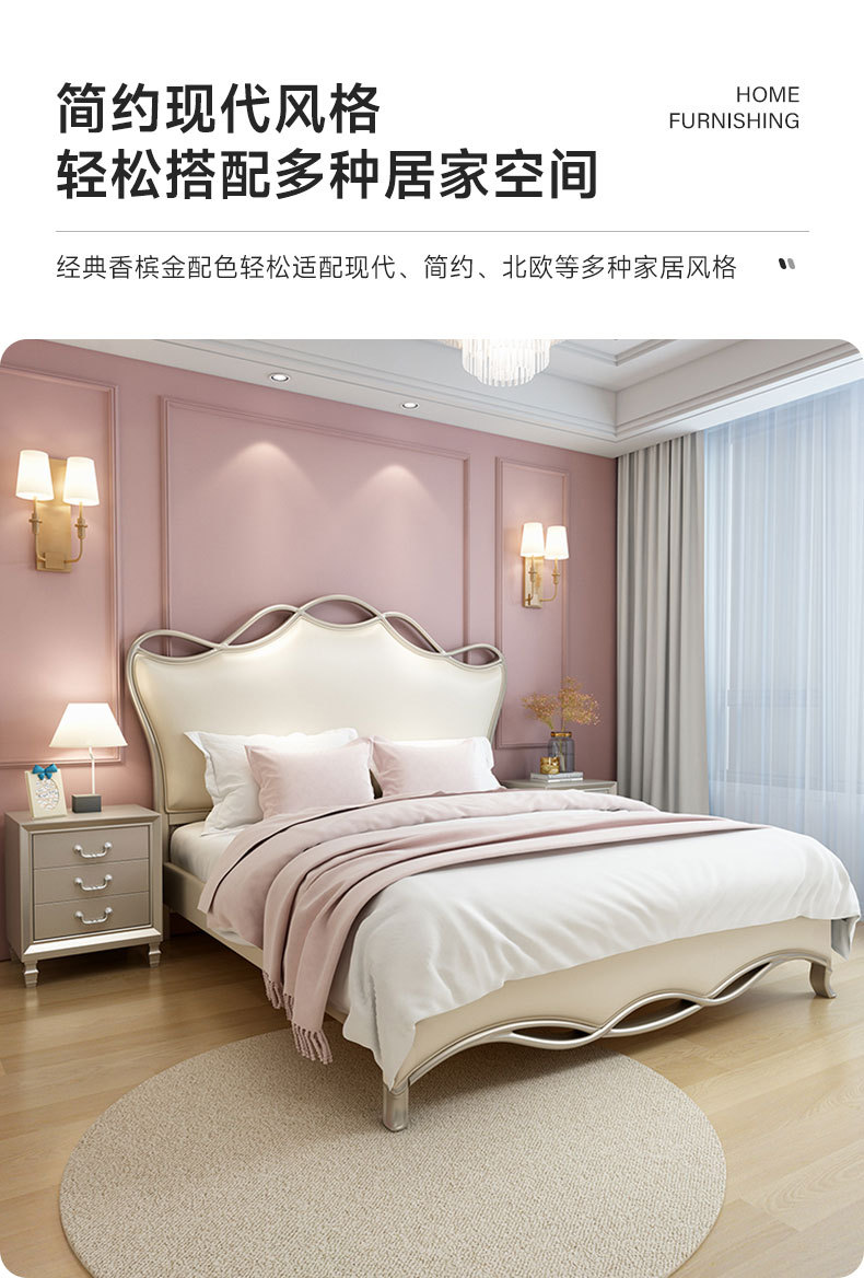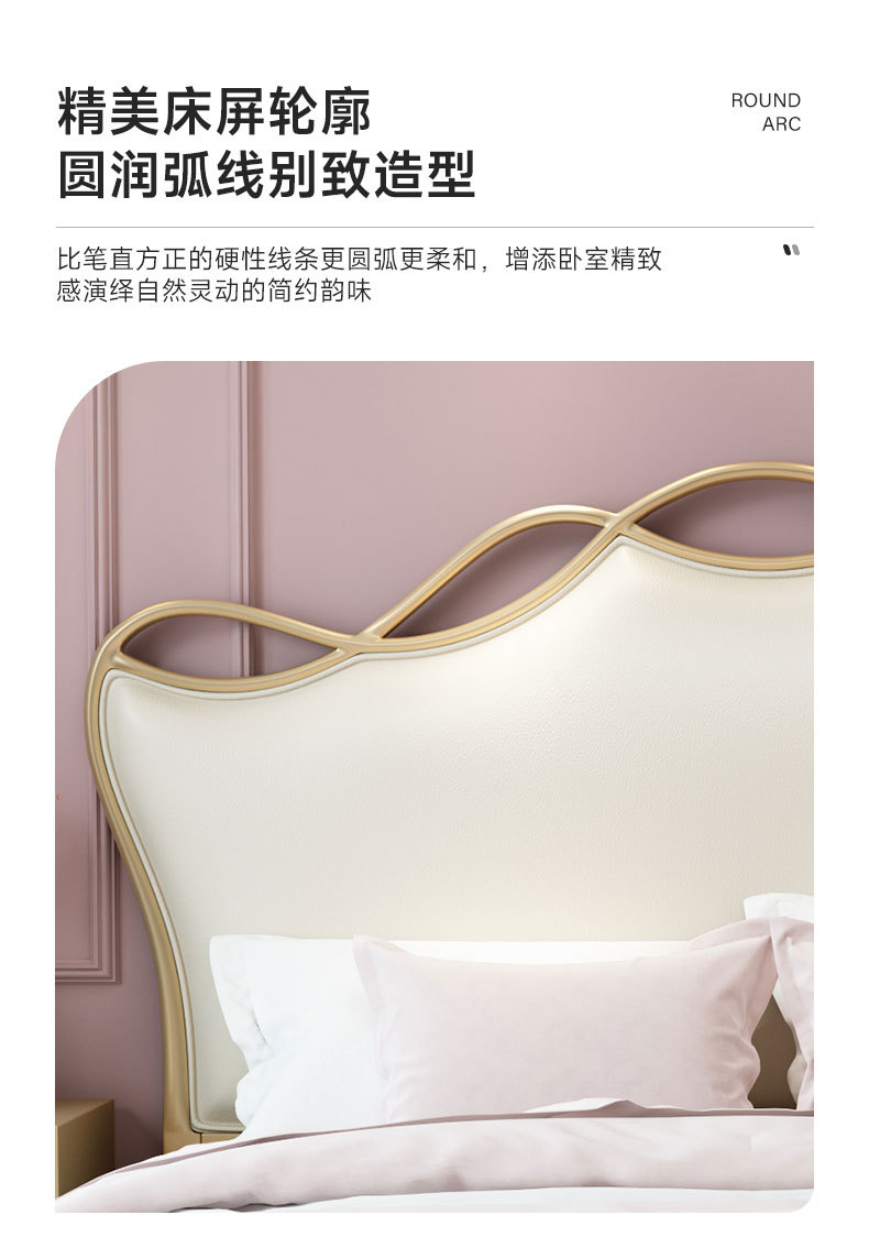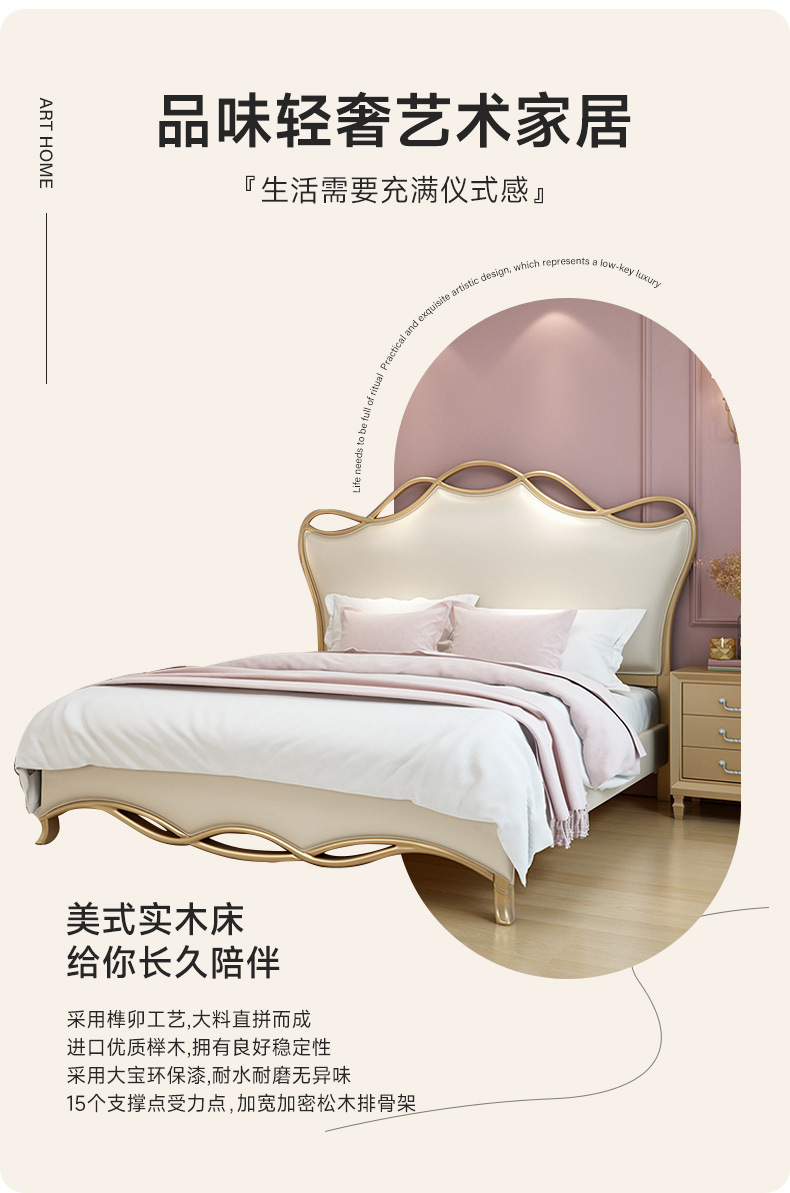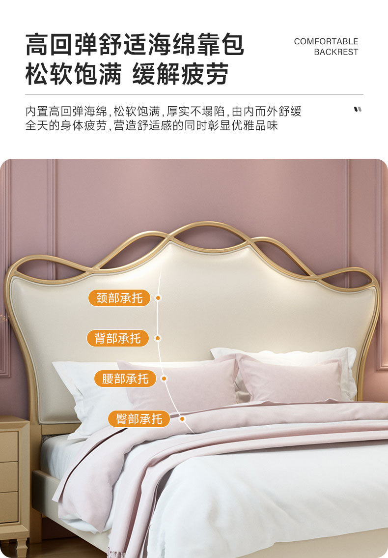 아메리칸 스타일 라이트 럭셔리 단단한 나무 침대 현대 간단한 마스터 침대 프랑스 크림 스타일 공주 침대 더블 침대 리본 침대 1.8M