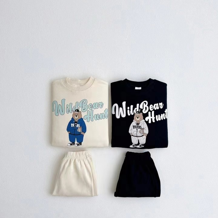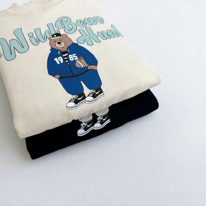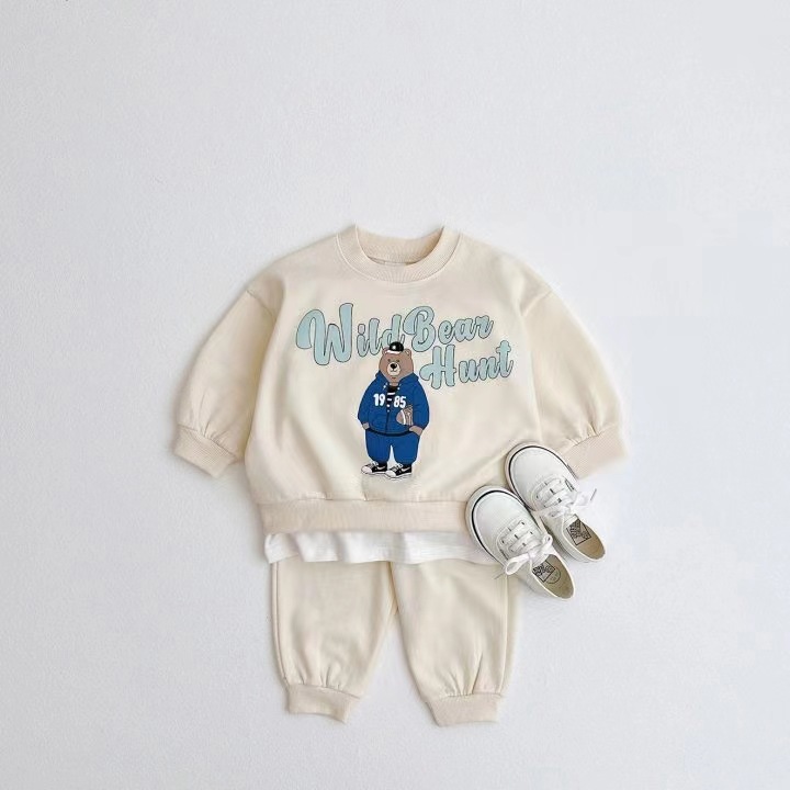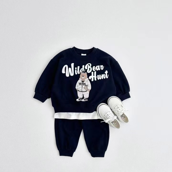 만화 곰 작은 남자 영어 알파벳 탑 가짜 투피스 스웨터 봄과 가을 어린이를 세트 한국 스타일
