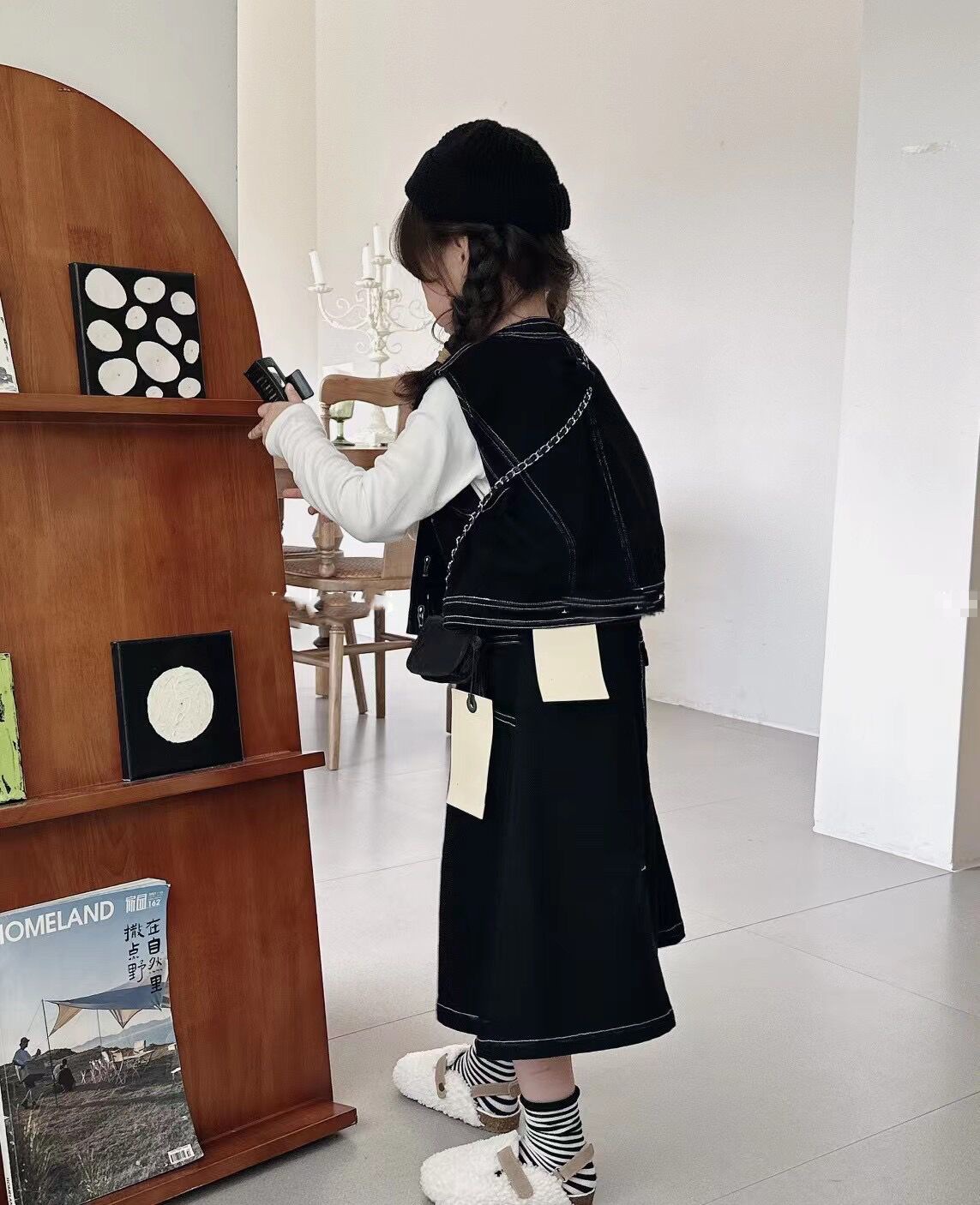 Bei Shang 아동복 2024 봄과 가을 소녀 패션 세련된 데님 세트 한국 스타일 어린이 조끼 스커트 투피스 세트