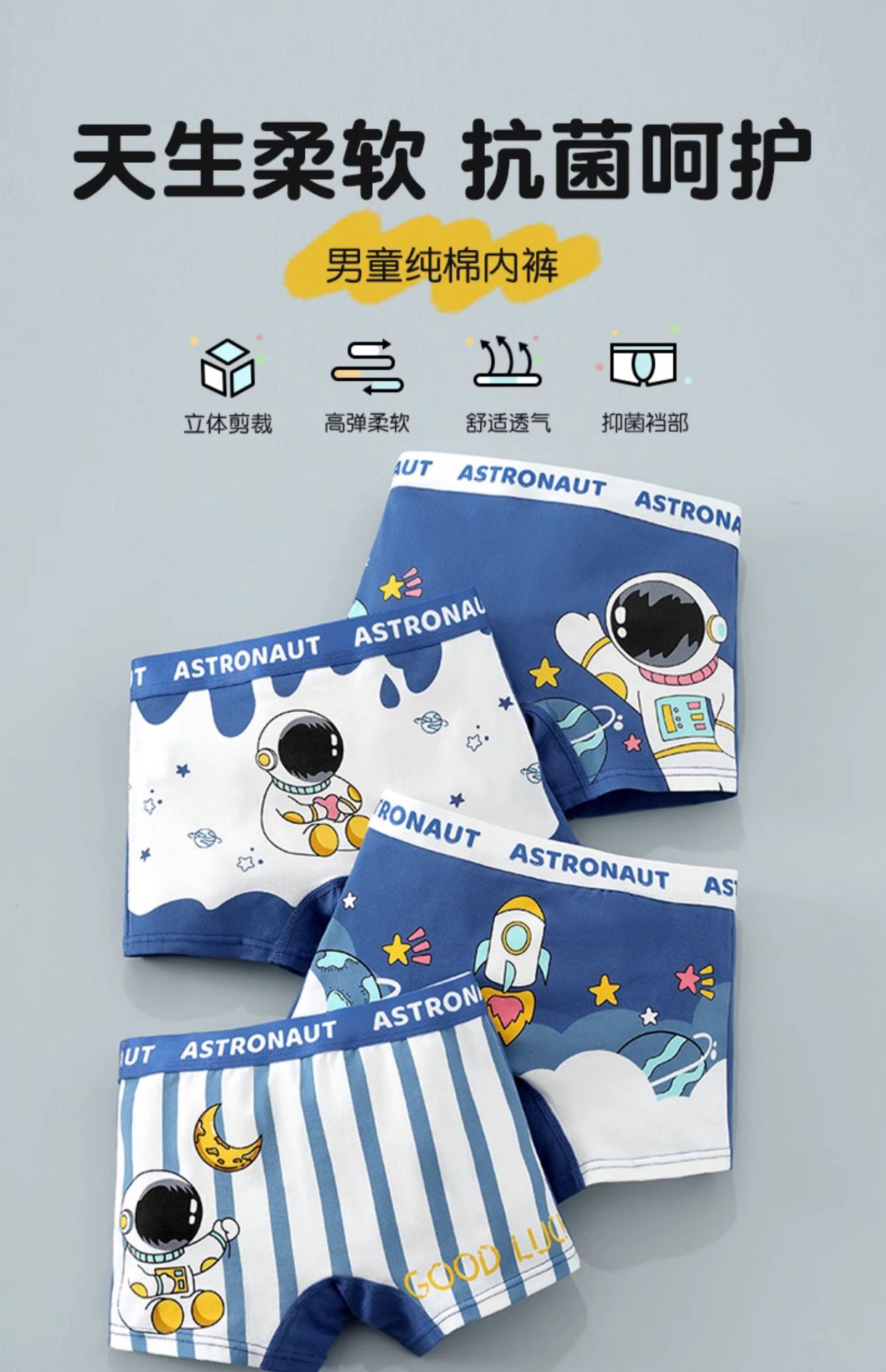 • B007 우주여행-4팩 A급 순면 항균 가랑이