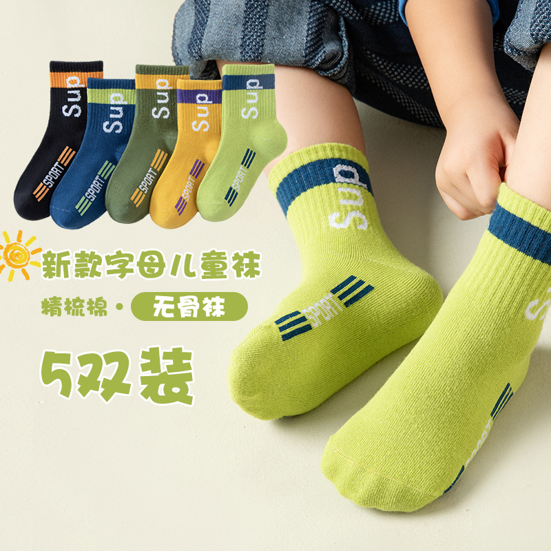 봄가을 남아 양말 한국 스타일 만화 인스 트렌드 중목 양말 면 무봉제 남아 중대형 어린이 롱 양말 도매스토어 가기
