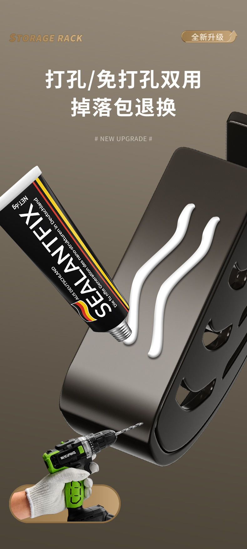 • [두꺼운 업그레이드] 건 그레이 3 층 네 모서리-막대 포함