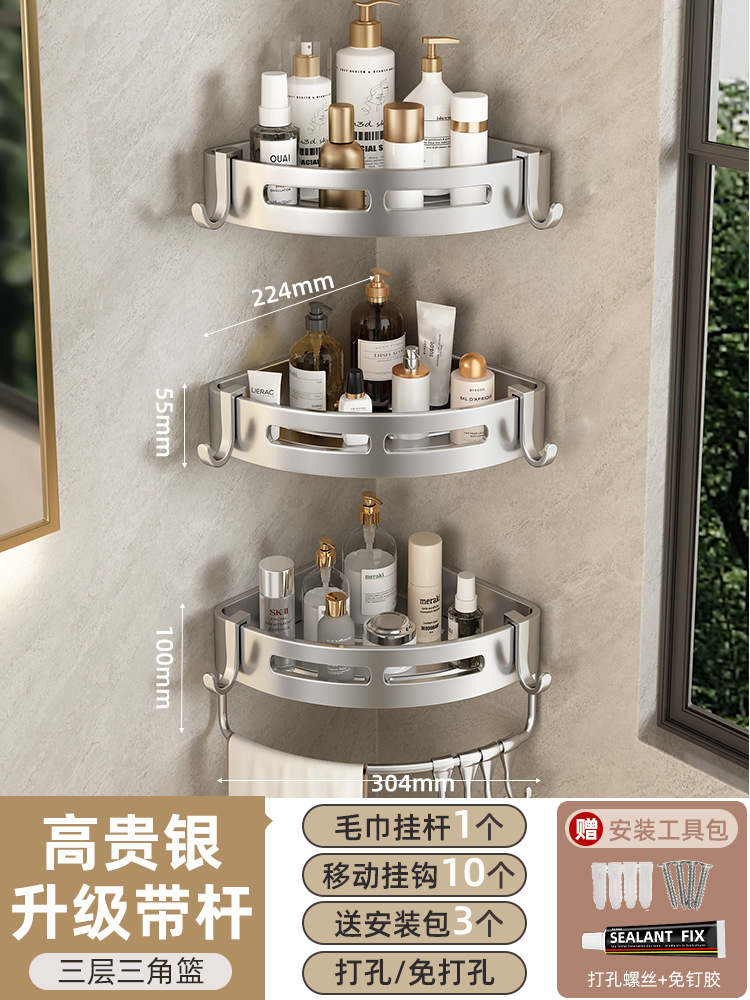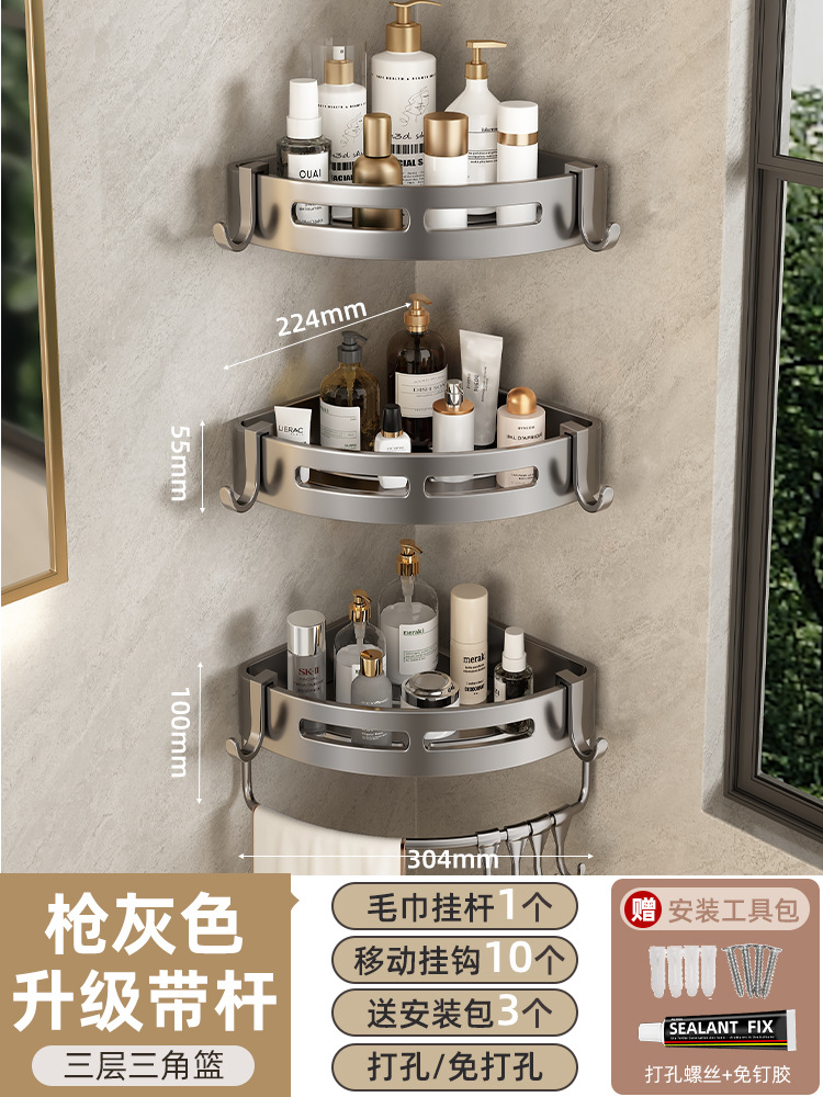 화장실 욕실 삼각형 수납 랙 화장실 화장실 선반 펀치 프리 벽걸이 욕조 수납 랙스토어 가기