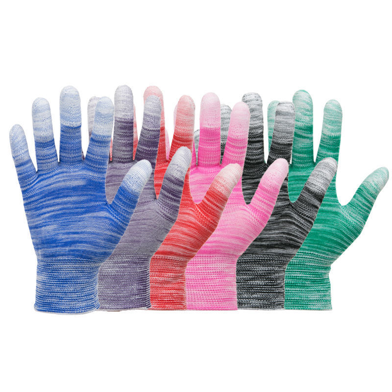나일론 Pu 손가락 코팅 장갑 노동 보호 작업 담그기 고무 코팅 가죽 통기성 스티커 손가락 코팅 장갑 도매 얇은 장갑