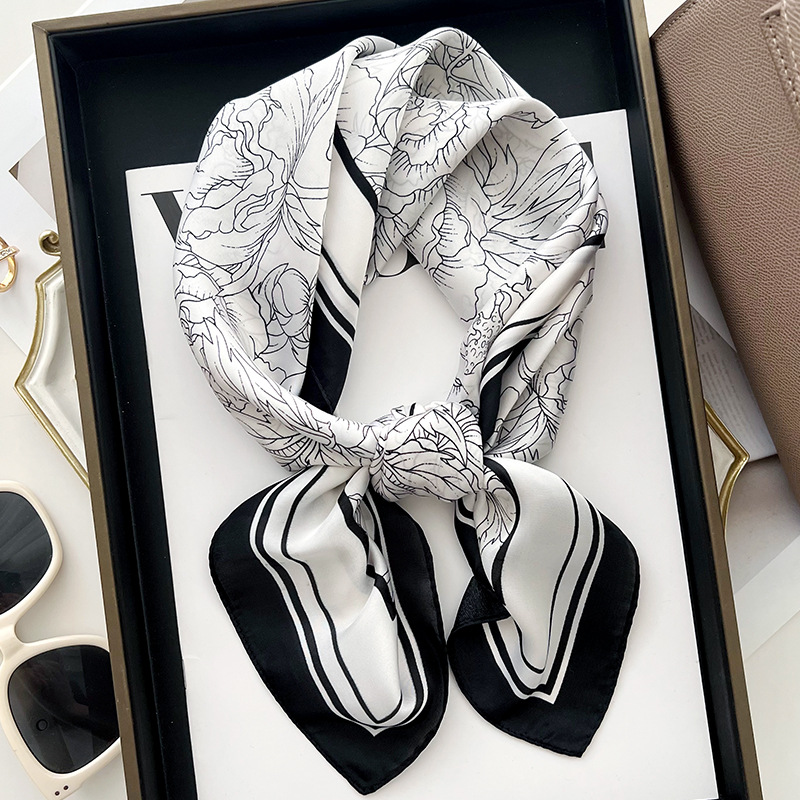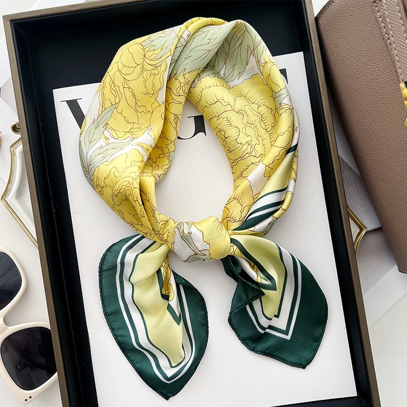봄과 여름 새로운 스타일 실크 스카프 여자의 프랑스 스타일 복고풍 작은 사각형 스카프 우아한 꽃 가을 스카프 모든 일치 장식 헤어 스트랩 스카프