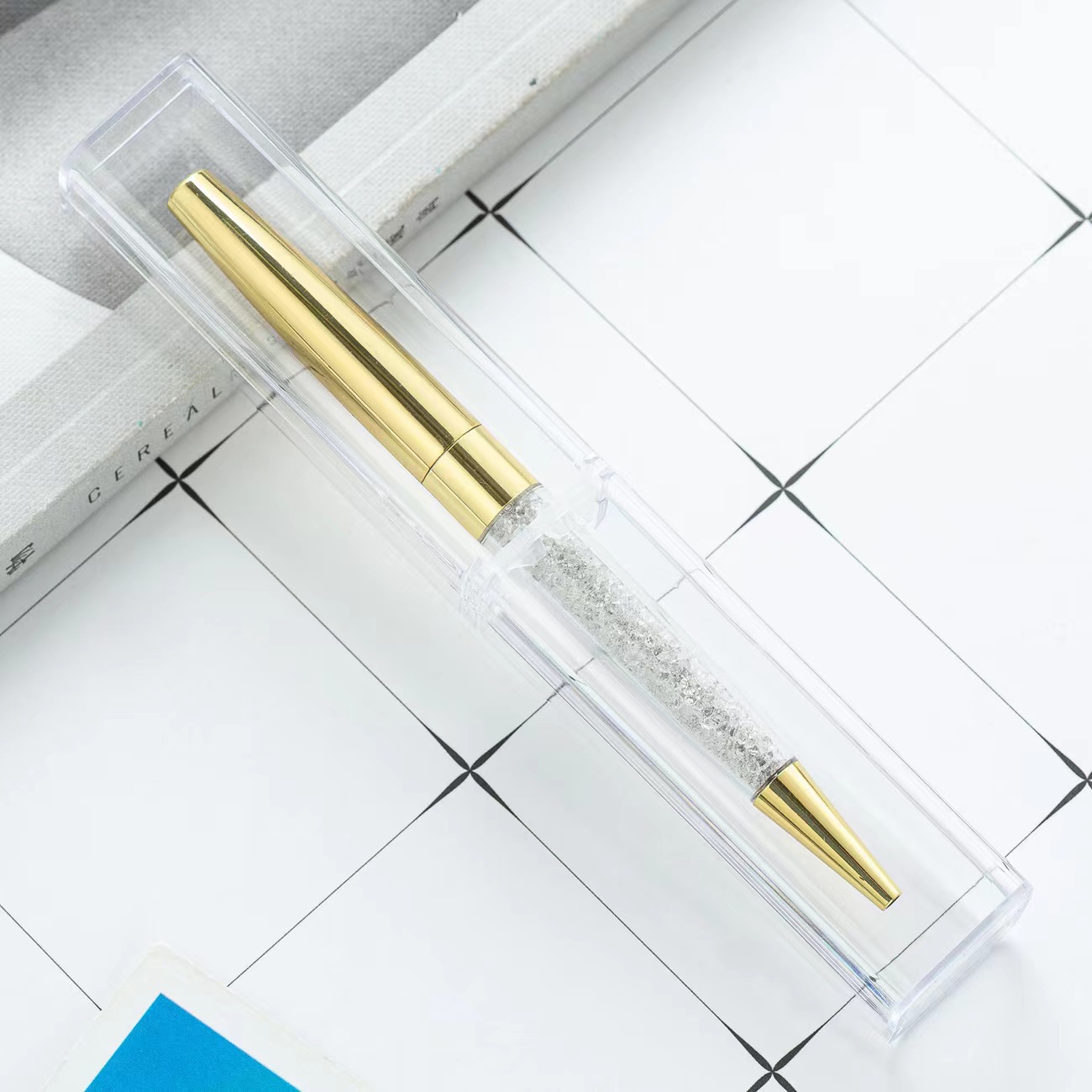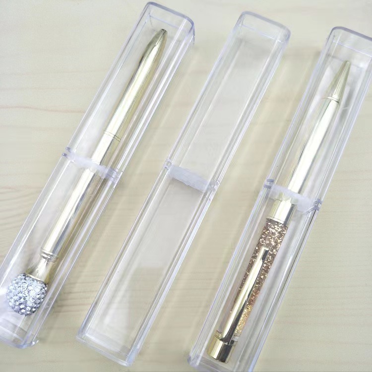 공장 재고 도매 투명 크리스탈 펜 상자 펜 상자 다이아몬드 펜 상자 플라스틱 문구 상자 인쇄 로고