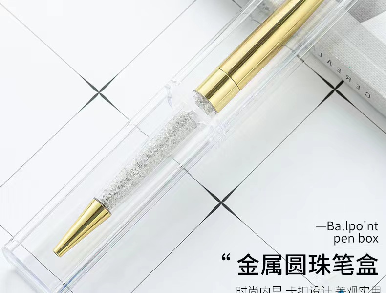 공장 재고 도매 투명 크리스탈 펜 상자 펜 상자 다이아몬드 펜 상자 플라스틱 문구 상자 인쇄 로고스토어 가기