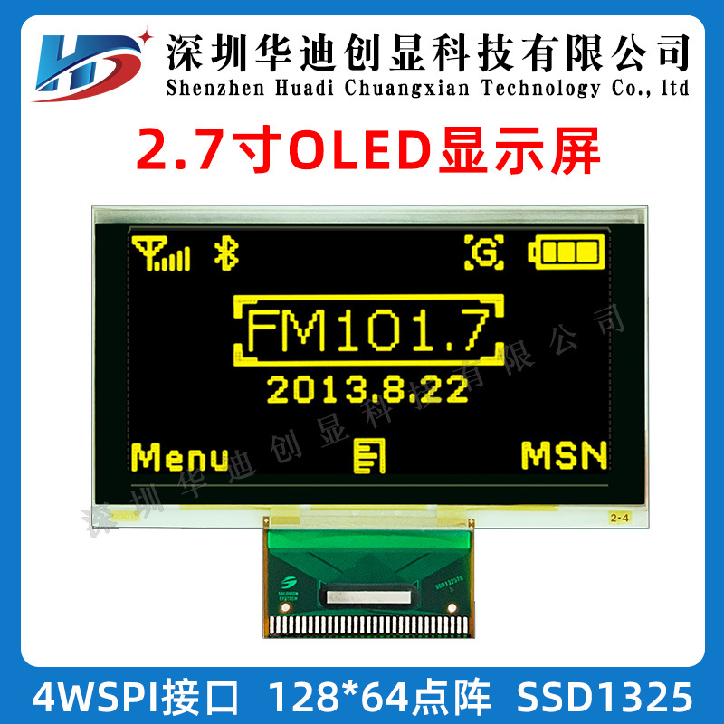 2.7 인치 OLED 디스플레이 128*64 해상도 LED 직렬 및 병렬 SSD1325 회색 노란색 빛 용접