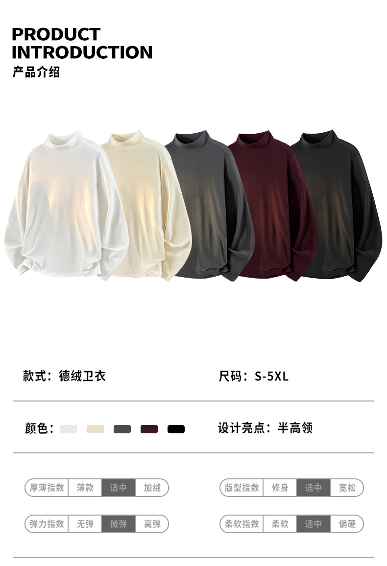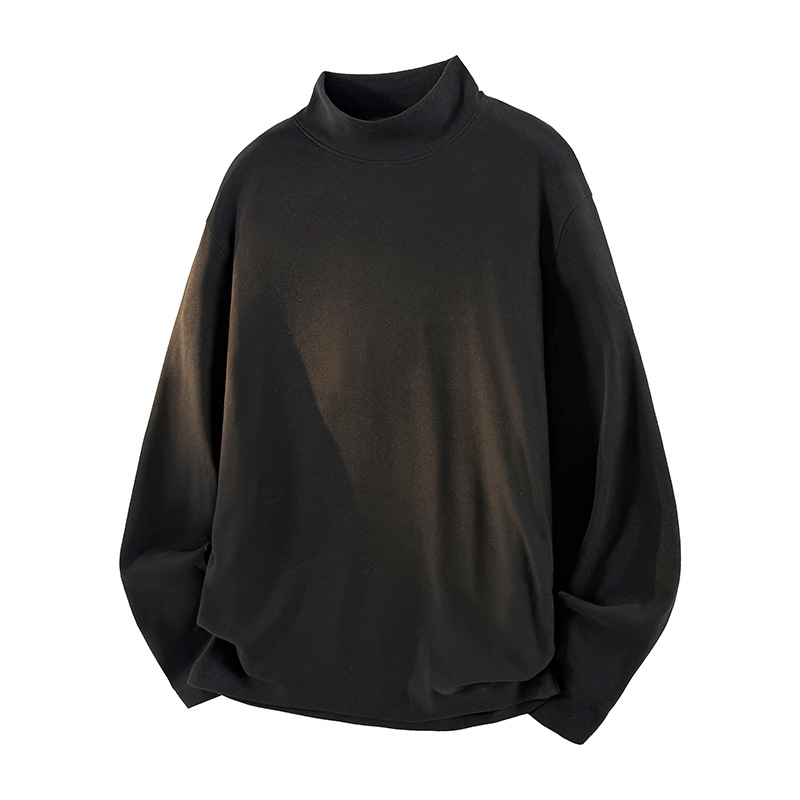 De Rong 웜 이너베이스 셔츠 남성용 가을과 겨울 심플 솔리드 컬러 루즈한 캐주얼 긴팔 티셔츠 남성용 스웨터