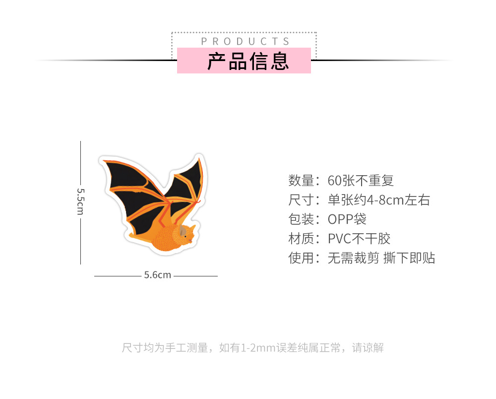 60 새로운 할로윈 박쥐 스티커 손 계정 스쿠터 노트북 문구 상자 방수 스티커 제조 업체 도매스토어 가기