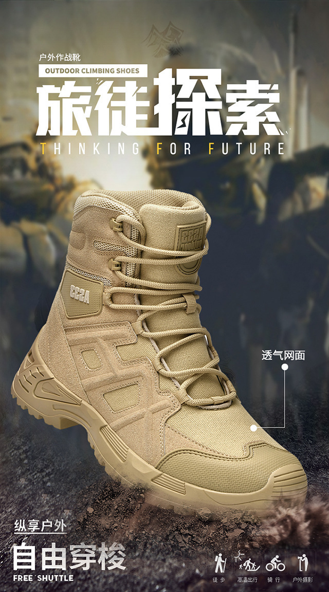 2023 여름 크로스 보더 새로운 군사 부츠 도매 하이탑 야외 전투 부츠 전술 부츠 하이킹 신발 사막 작업복 부츠 남성
