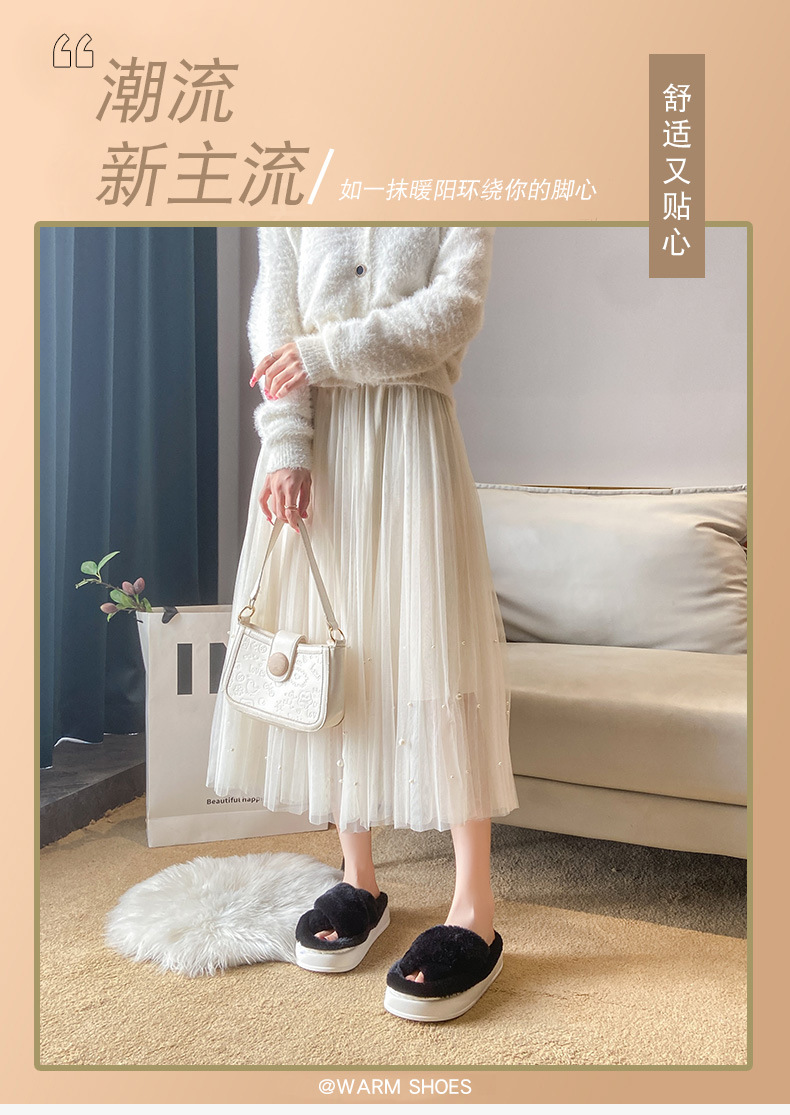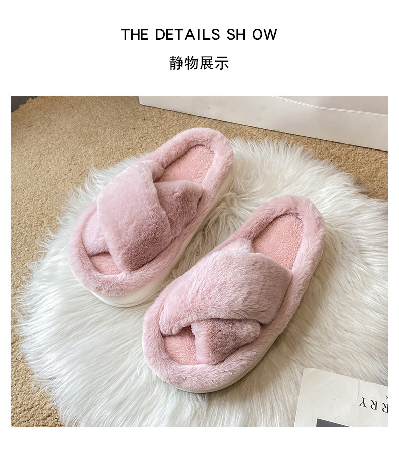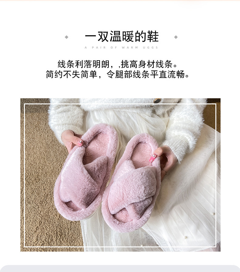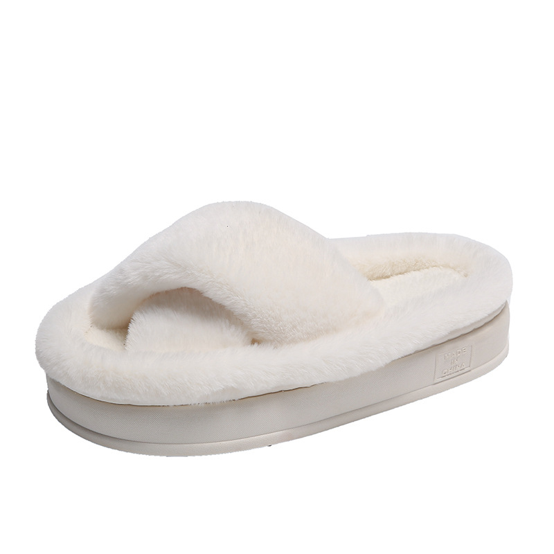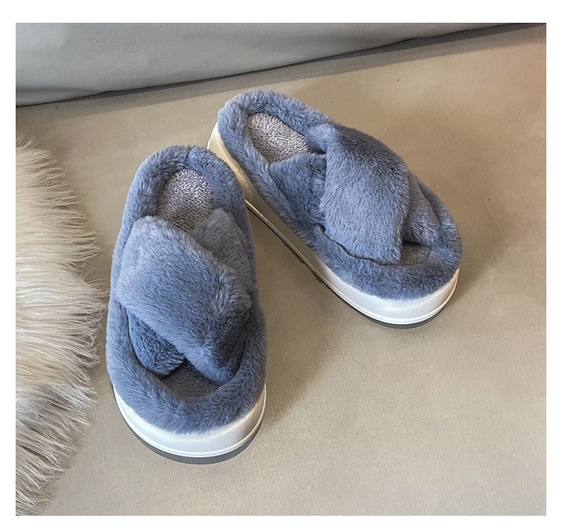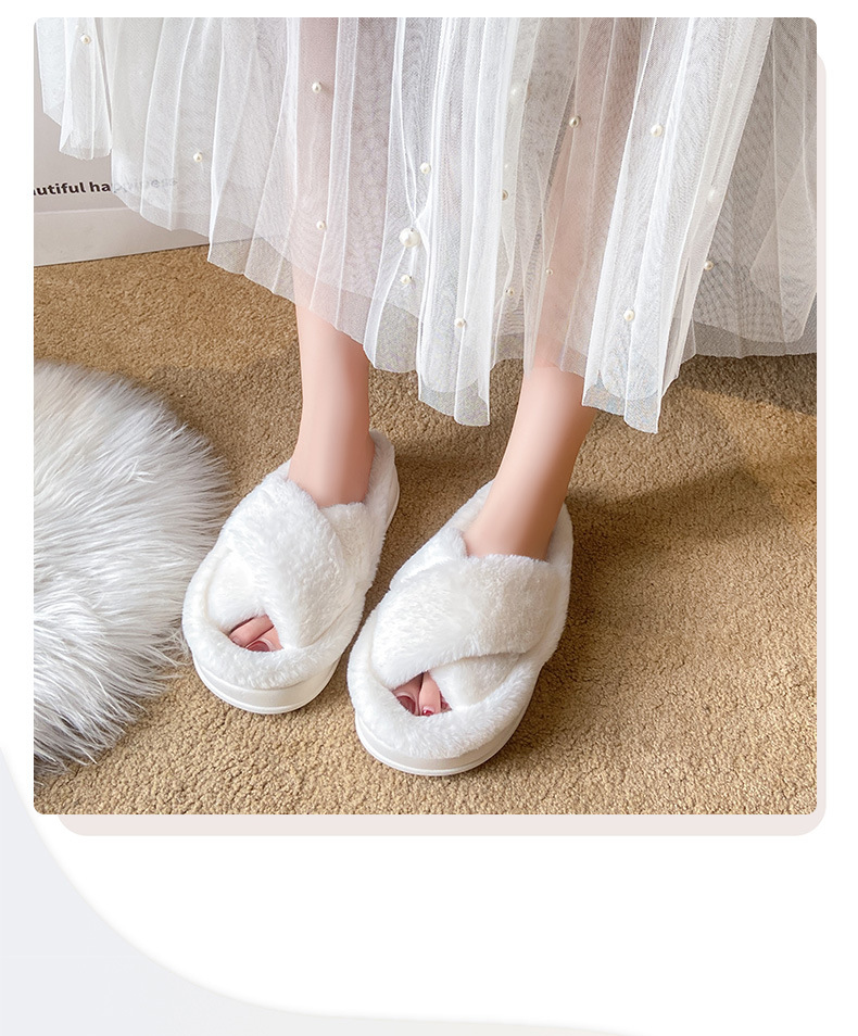 2024년 가을 신상 크로스 플리스 솔리드 컬러 퍼 슬리퍼, 두꺼운 밑창 캐주얼 패션 슬리퍼 여성용 홈웨어스토어 가기