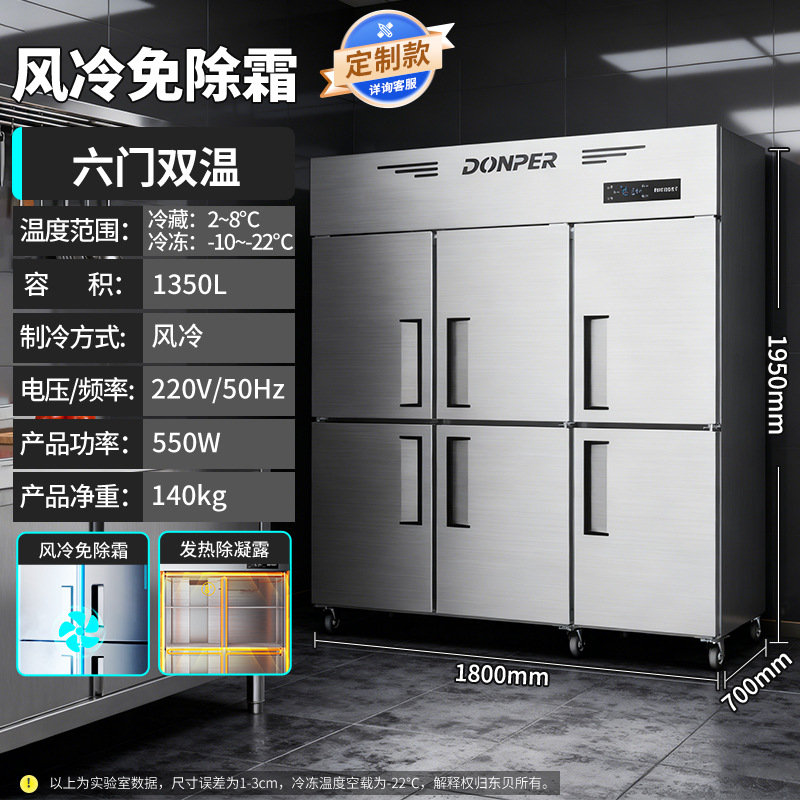 • [공냉식 및 성에 방지 맞춤형 모델] 1350L/6도어 이중 온도-22°/중간 빔 가열 및 해동/전자 온도 조절