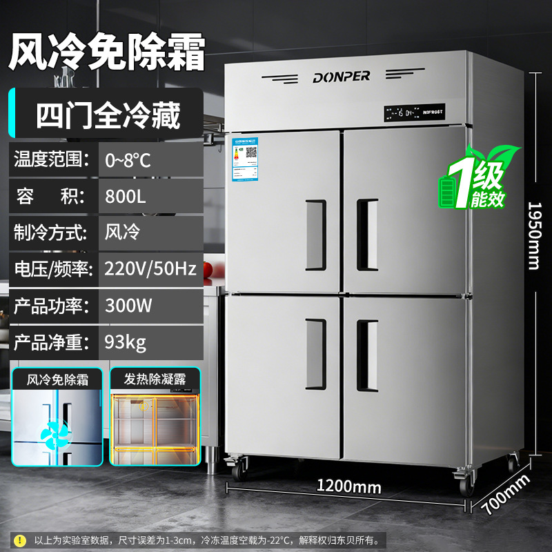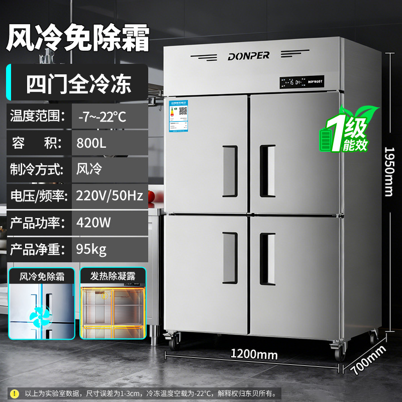 • 【최고 등급 에너지 효율/고급 저온형】 4도어 냉동고 -22°/980L/5면 동관 냉동/스테인리스 선반/중앙 빔 가열