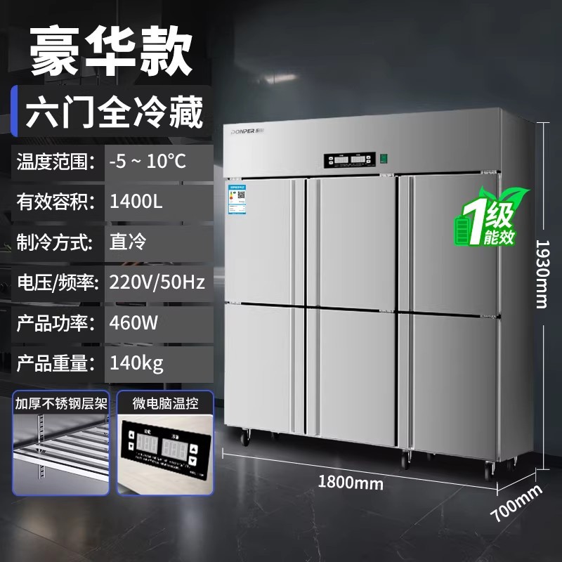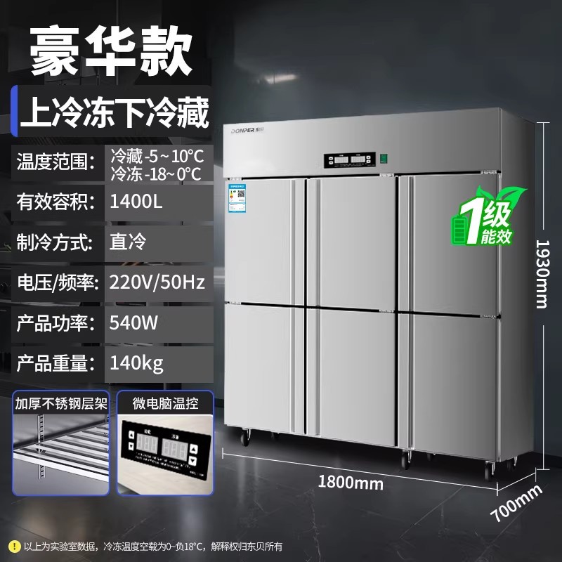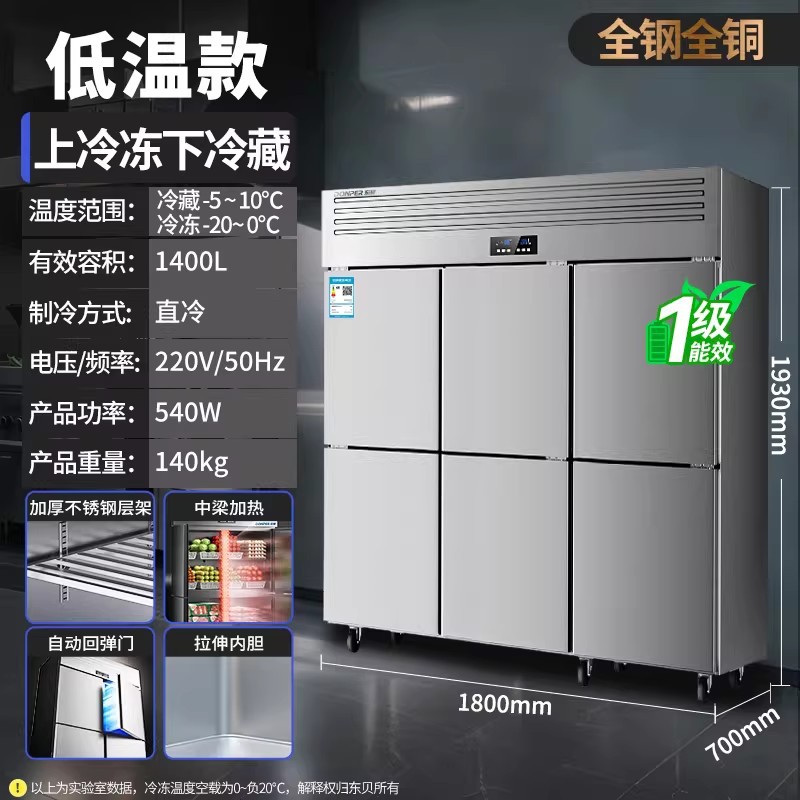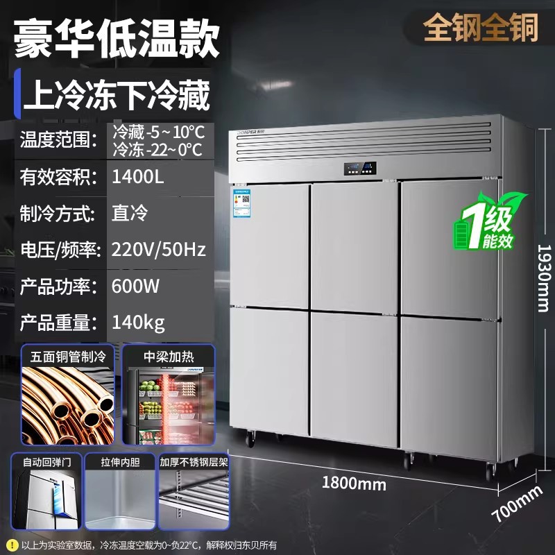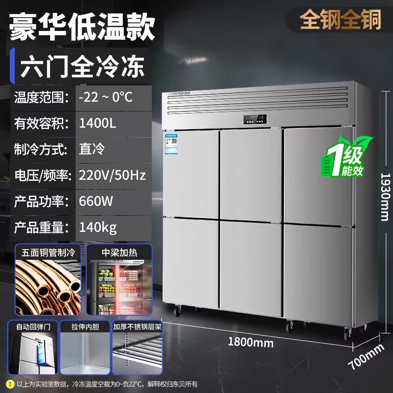 • 【최고 등급 에너지 효율/고급 저온 모델】 6도어 듀얼 온도 -22°/1400L/5면 동관 냉동/스테인리스 선반/중앙 빔 가열