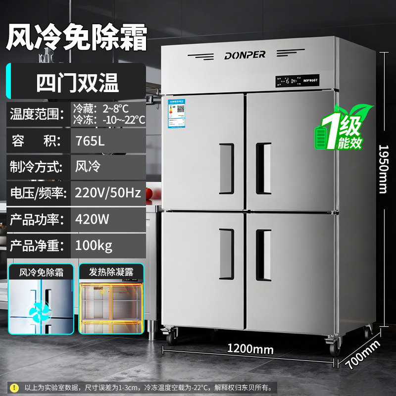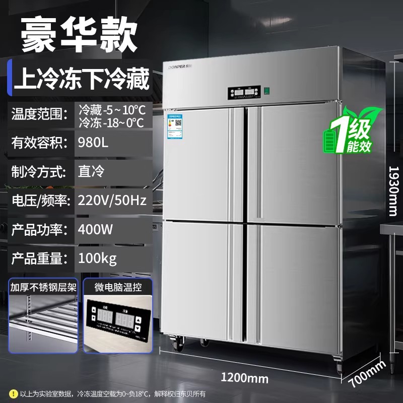• 【최고 등급 에너지 효율/고급 저온 모델】 4도어 듀얼 온도 -22°/980L/5면 동관 냉동/스테인리스 선반/중앙 빔 가열