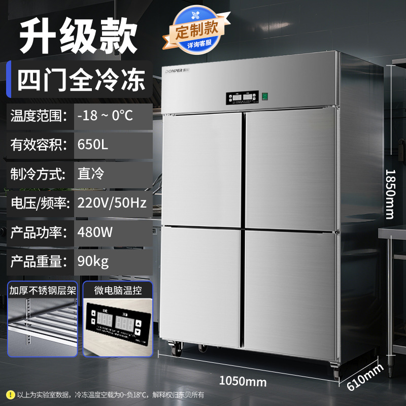 • 업그레이드 맞춤형 소형 4도어 냉동고 / 650L / 스테인리스 선반 / 컴퓨터 온도 제어