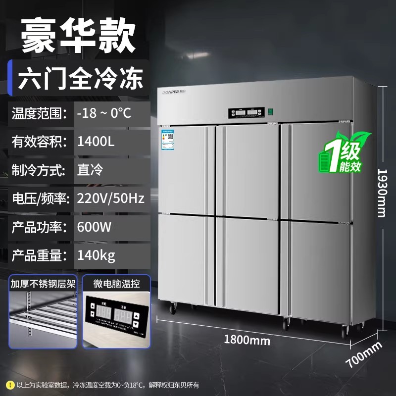 • 【최고 등급 에너지 효율/고급 저온 모델】 6도어 냉동고 -22°/1400L/5면 동관 냉동/스테인리스 선반/중앙 빔 가열