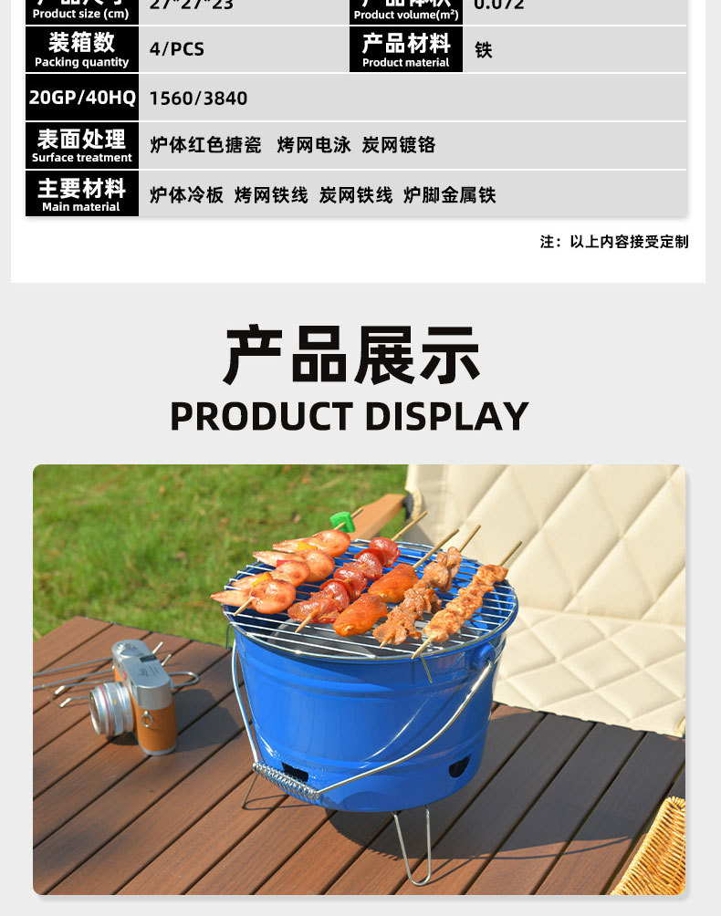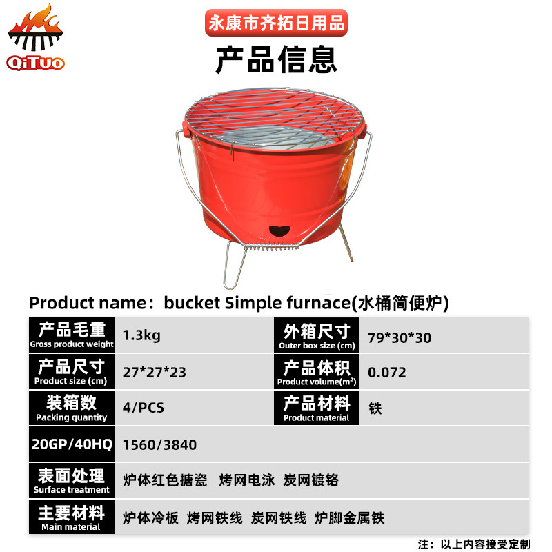 휴대용 화재 분지 버킷 스토브 가정용 탄소 분지 야외 오븐 바베큐 스토브 휴대용 숯불 스토브 공장 도매 구운 생선