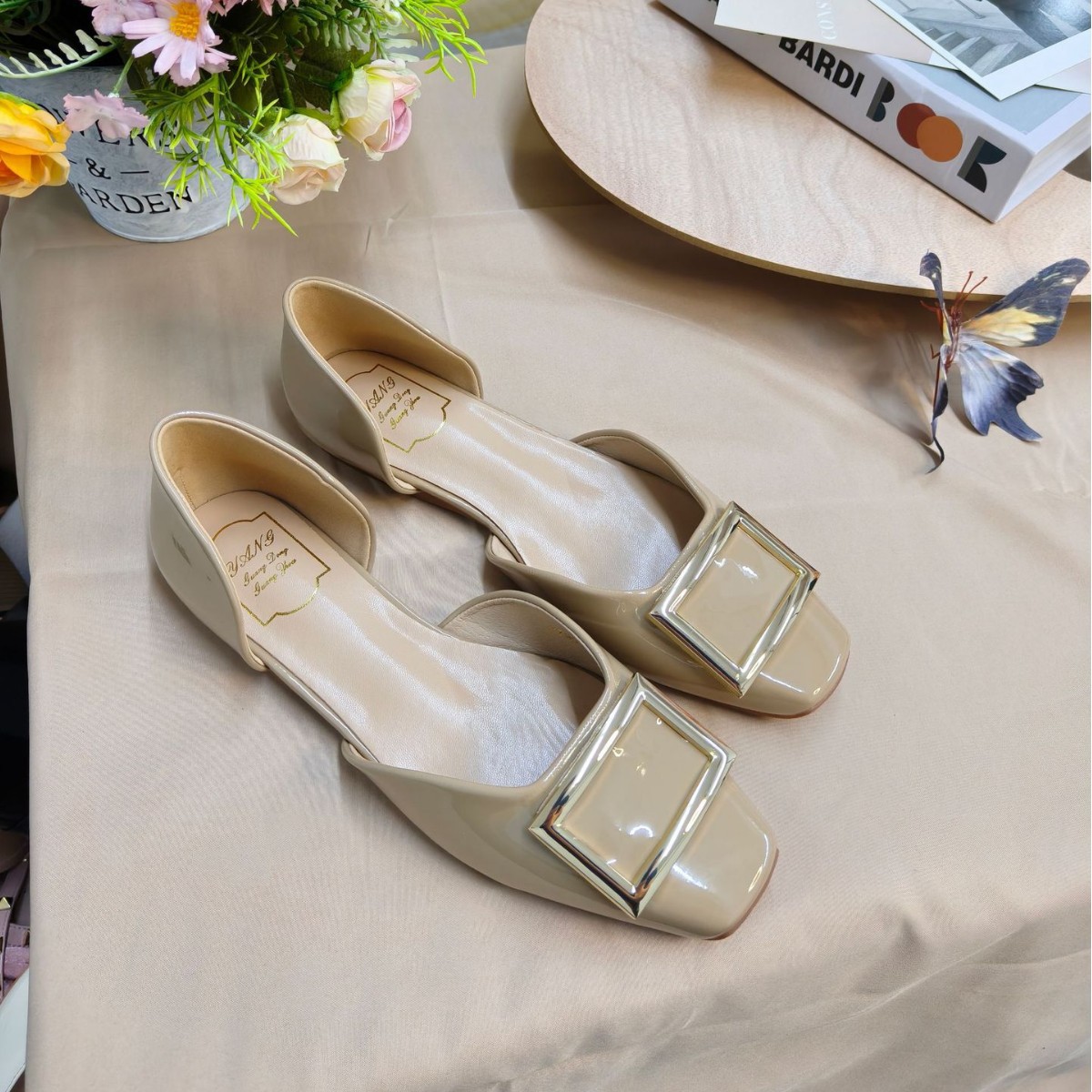 스팟 초 헤어! 포도 엄마 같은 신발 클래식 RV 스퀘어 버클 플랫 얕은 우아한 작은 스퀘어 헤드 통근 신발