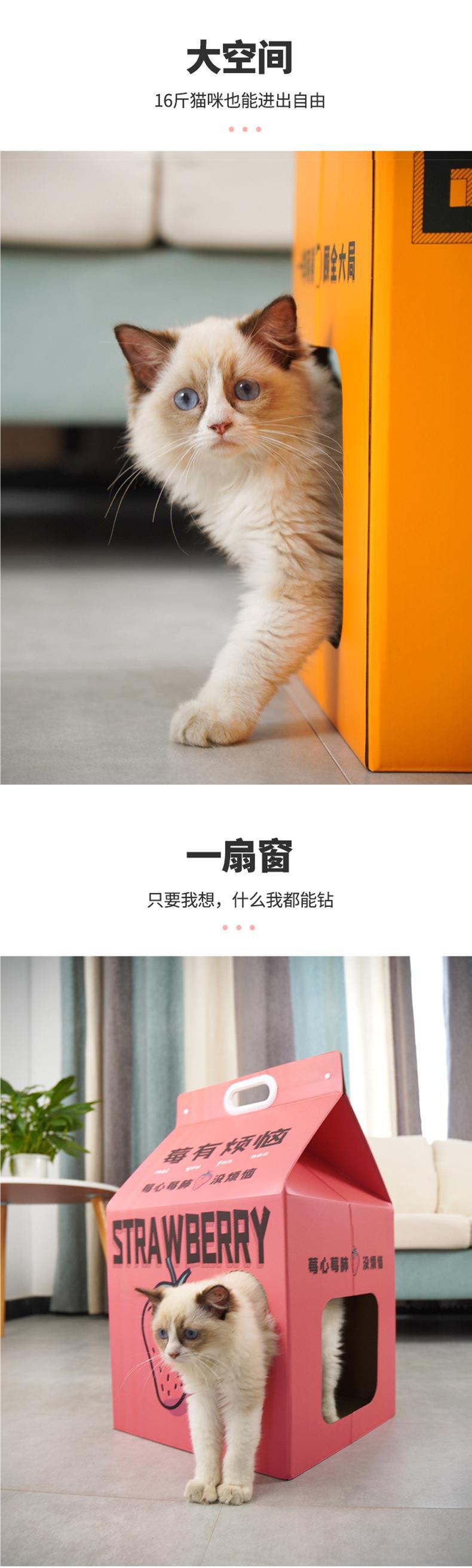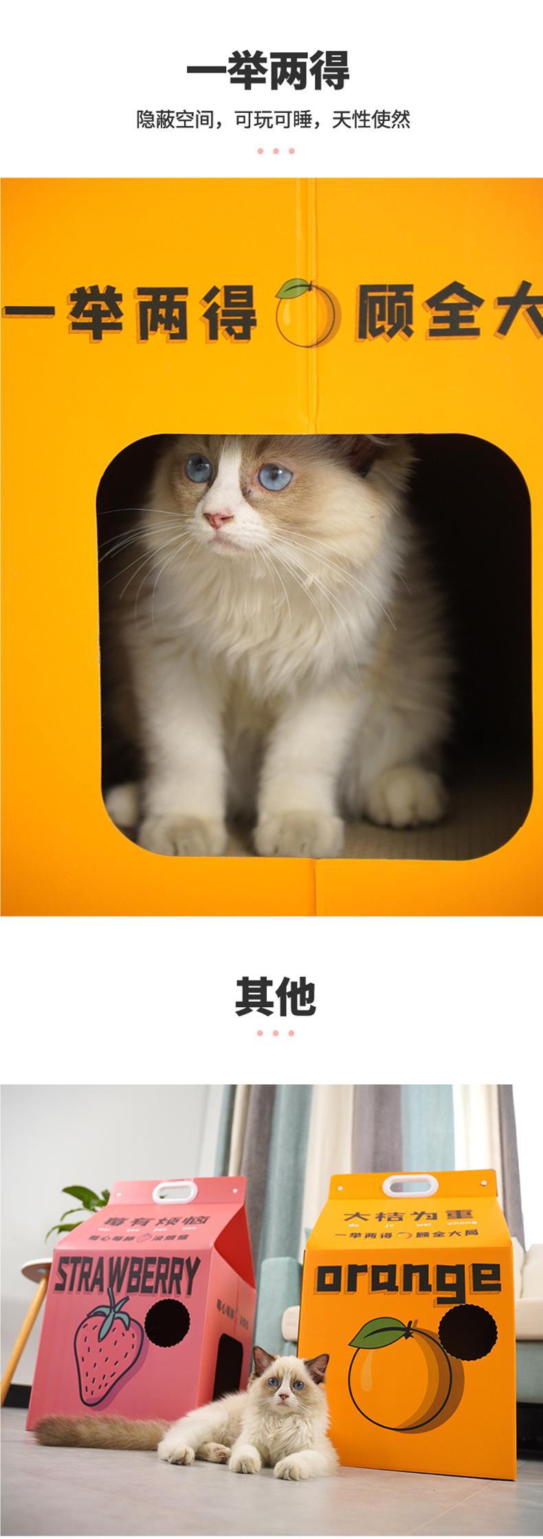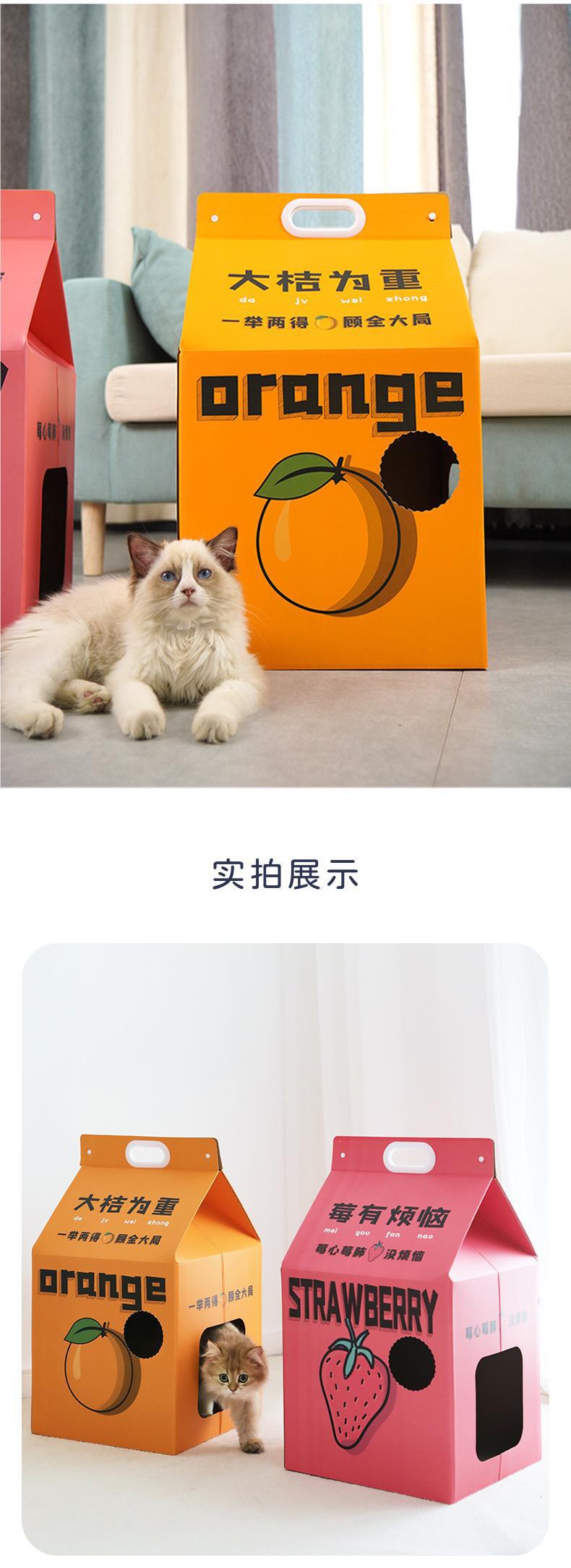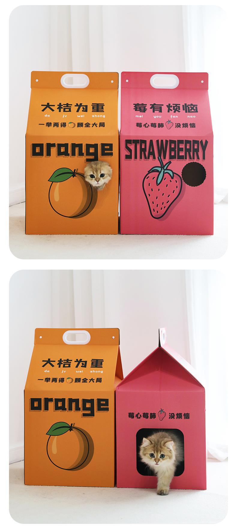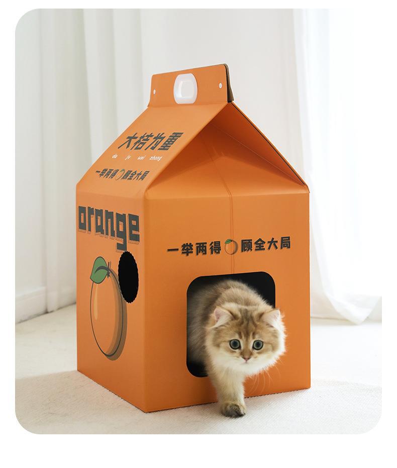 골판지 고양이 스크래치 보드가 내장된 우유 상자 고양이 둥지, 내마모성 및 긁힘 방지, 고양이 침대용 밀폐형 고양이 상자
