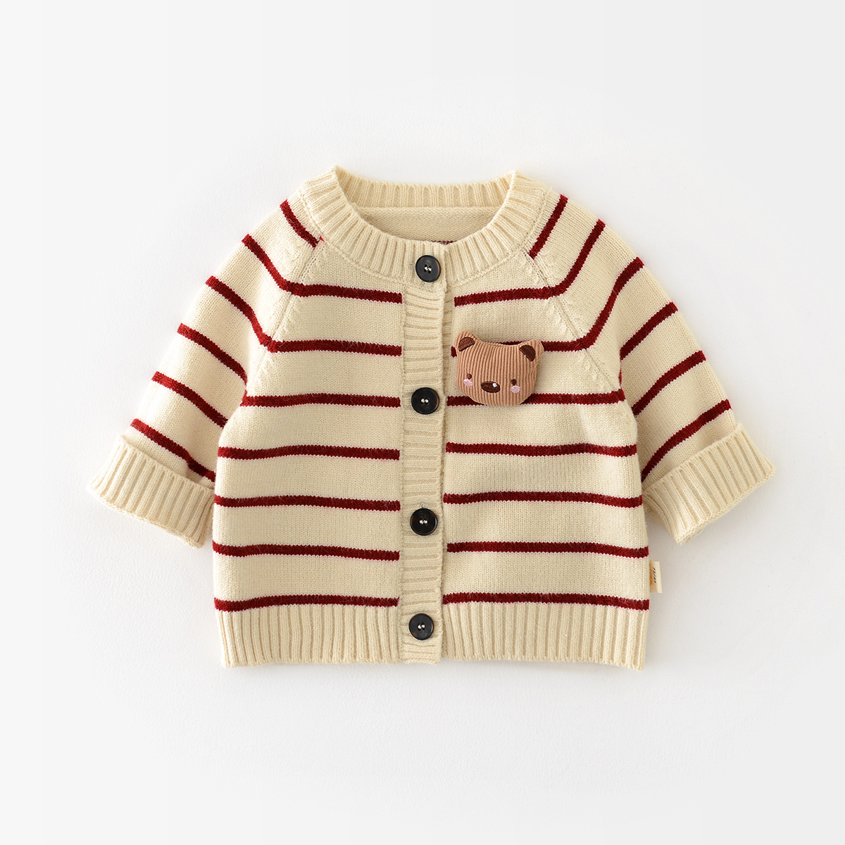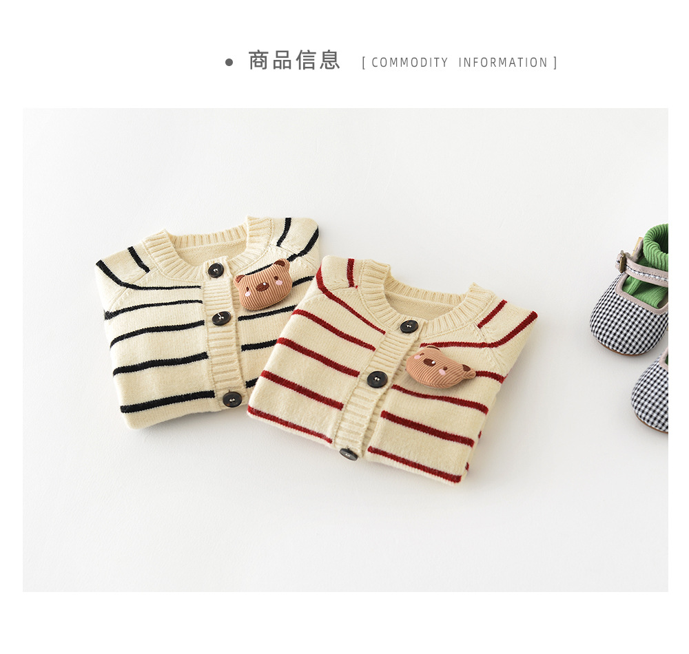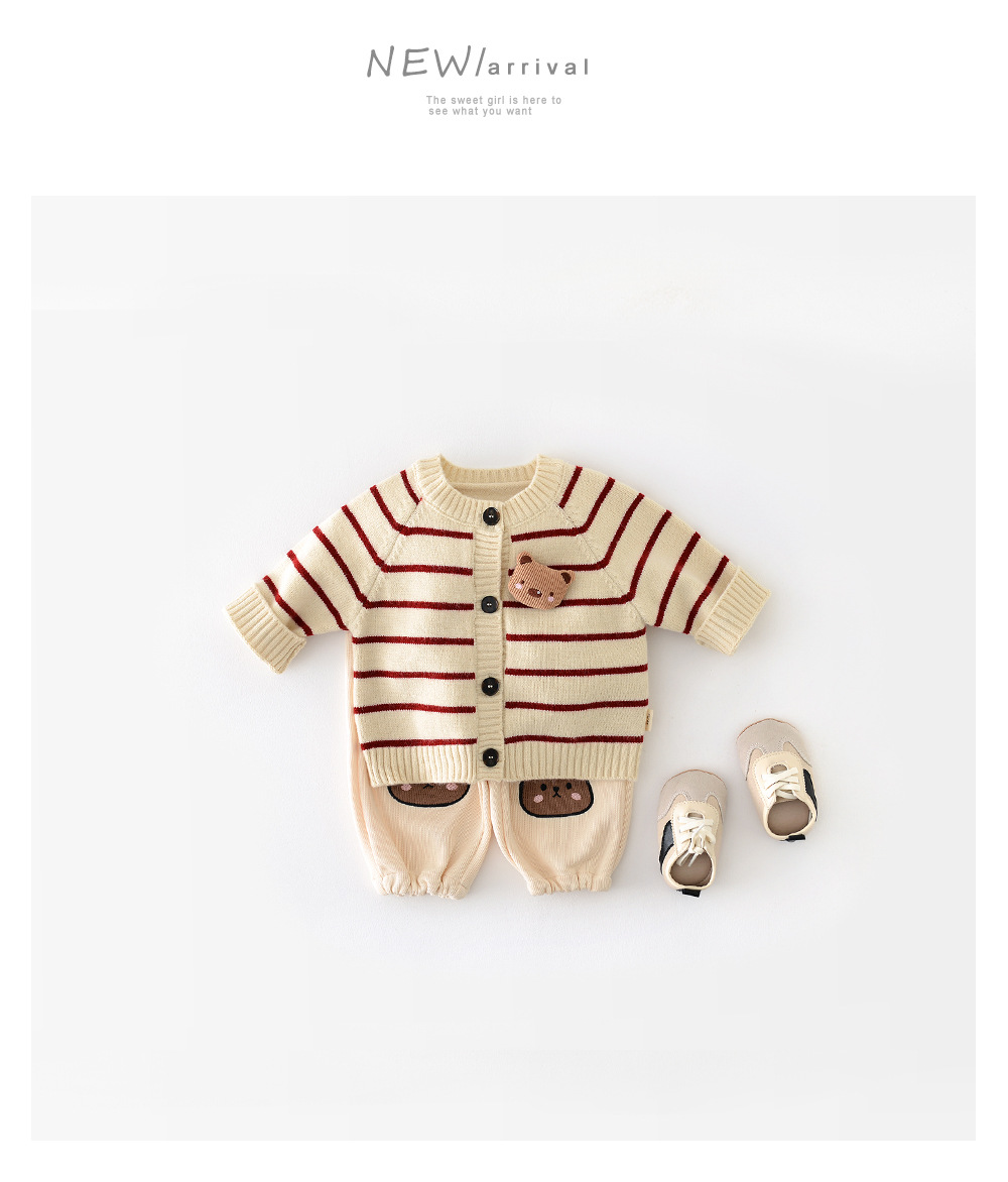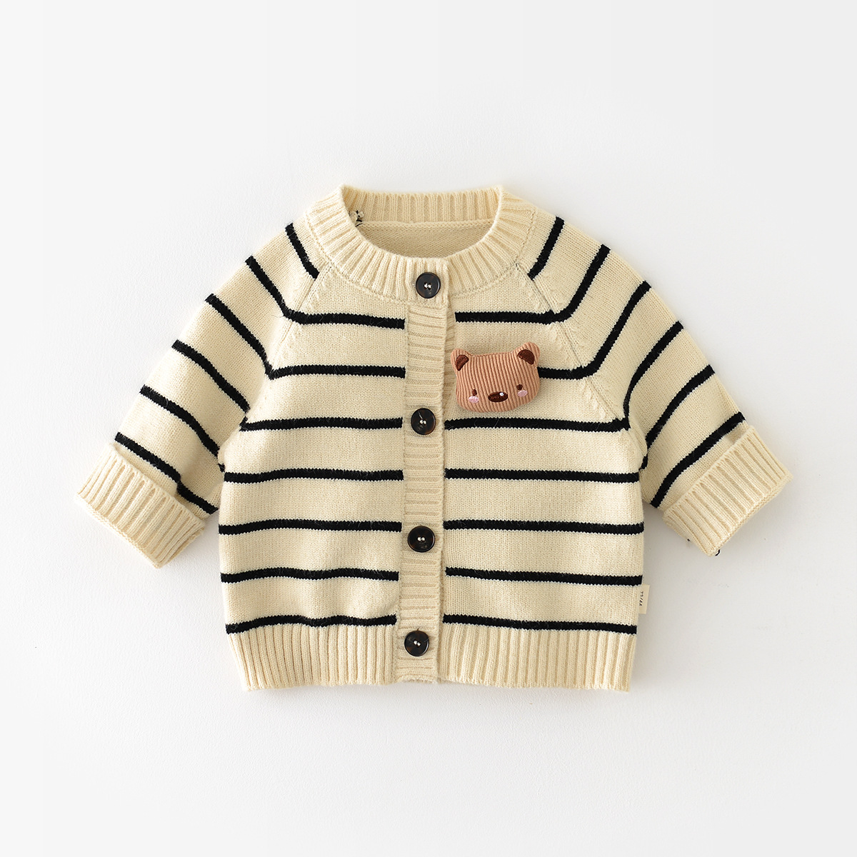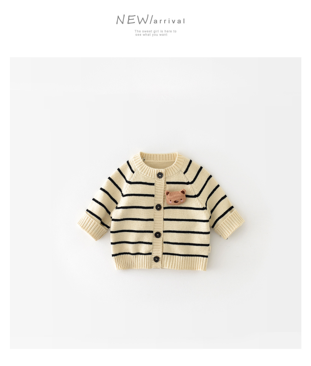 어린이 니트 가디건 가을 옷 아기 줄무늬 곰 긴팔 재킷 아기 소년과 소녀를위한 느슨한 한국식 재킷