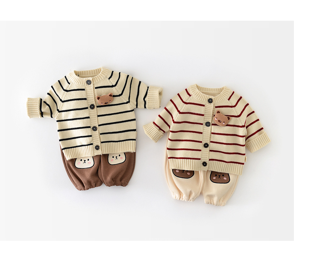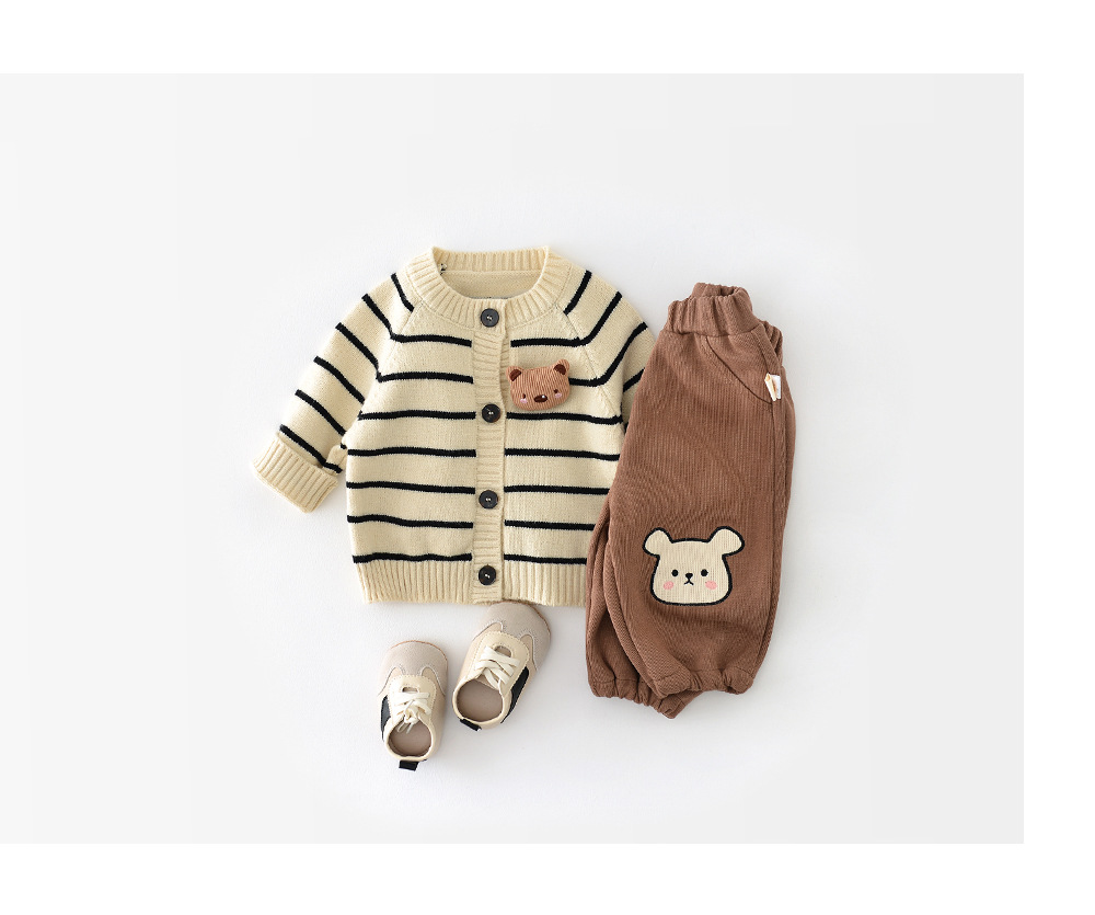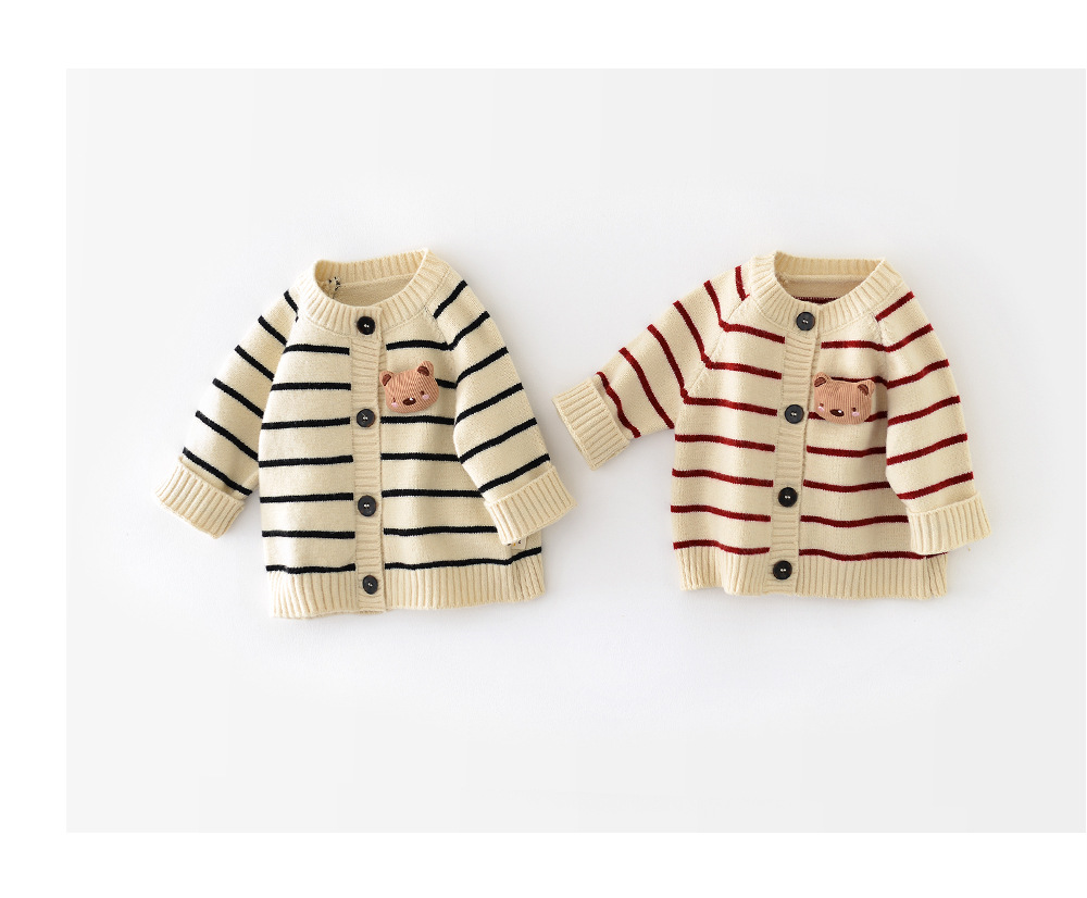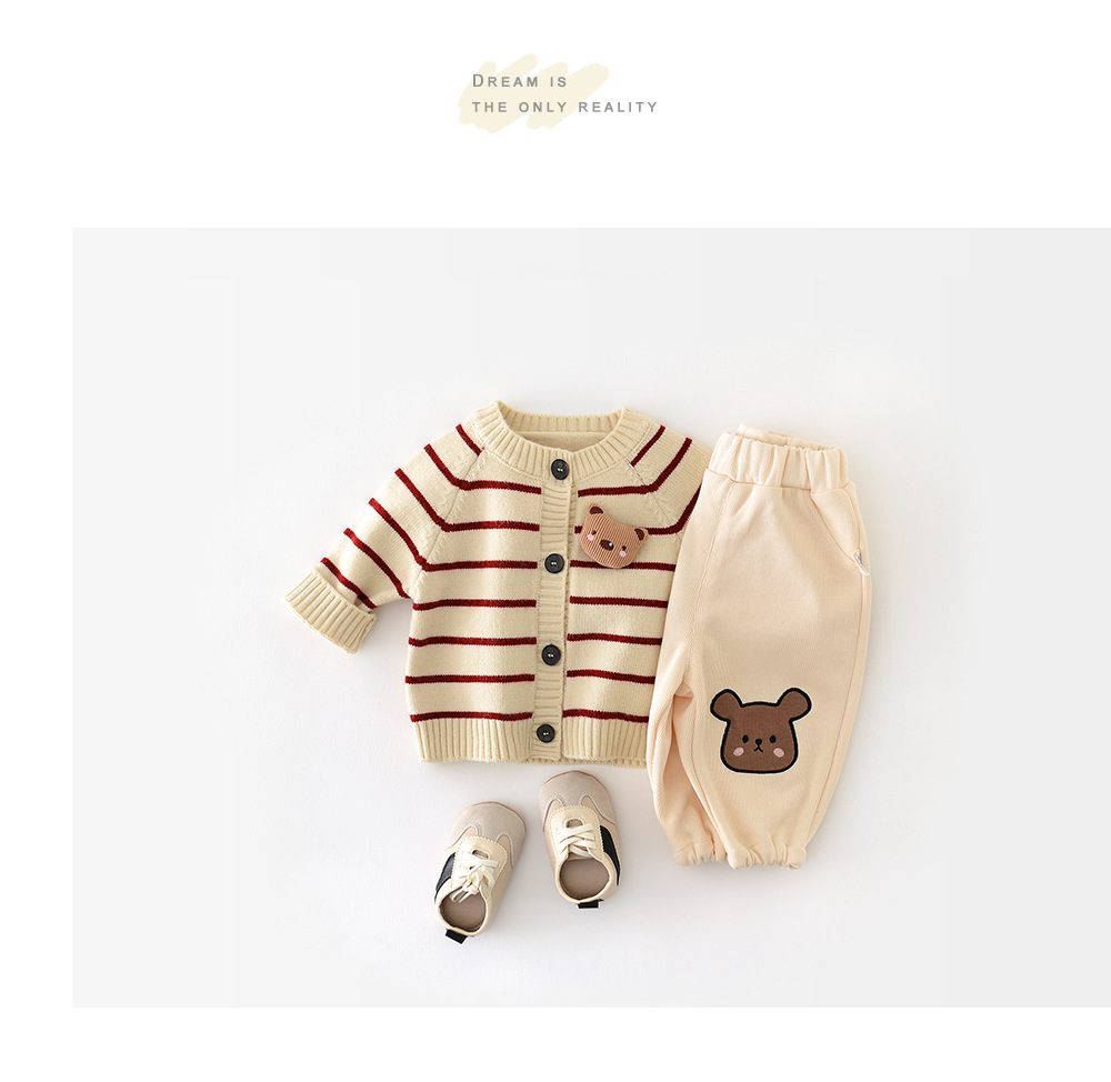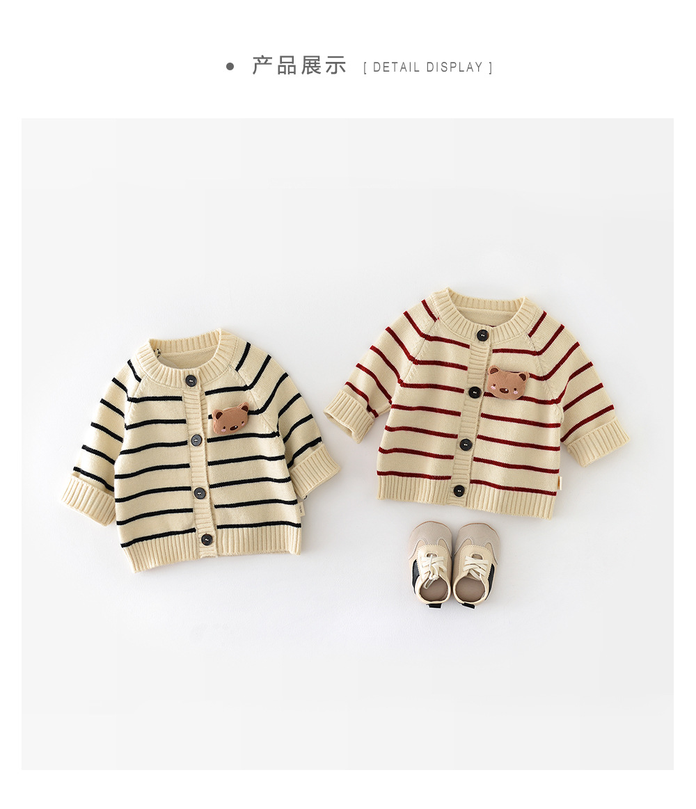 어린이 니트 가디건 가을 옷 아기 줄무늬 곰 긴팔 재킷 아기 소년과 소녀를위한 느슨한 한국식 재킷