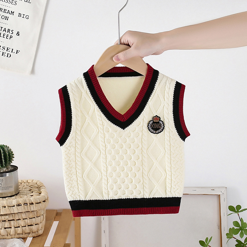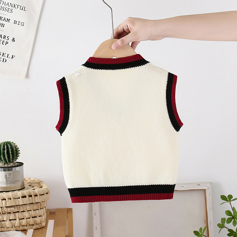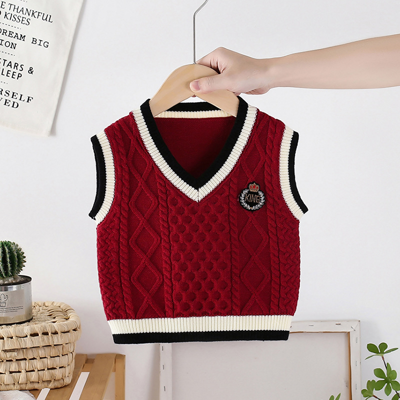 남아 니트 조끼 V-넥 봄과 가을 겉옷 여성 아기의 스웨터 아기의 울 조끼 아기의 양복 조끼 겉옷