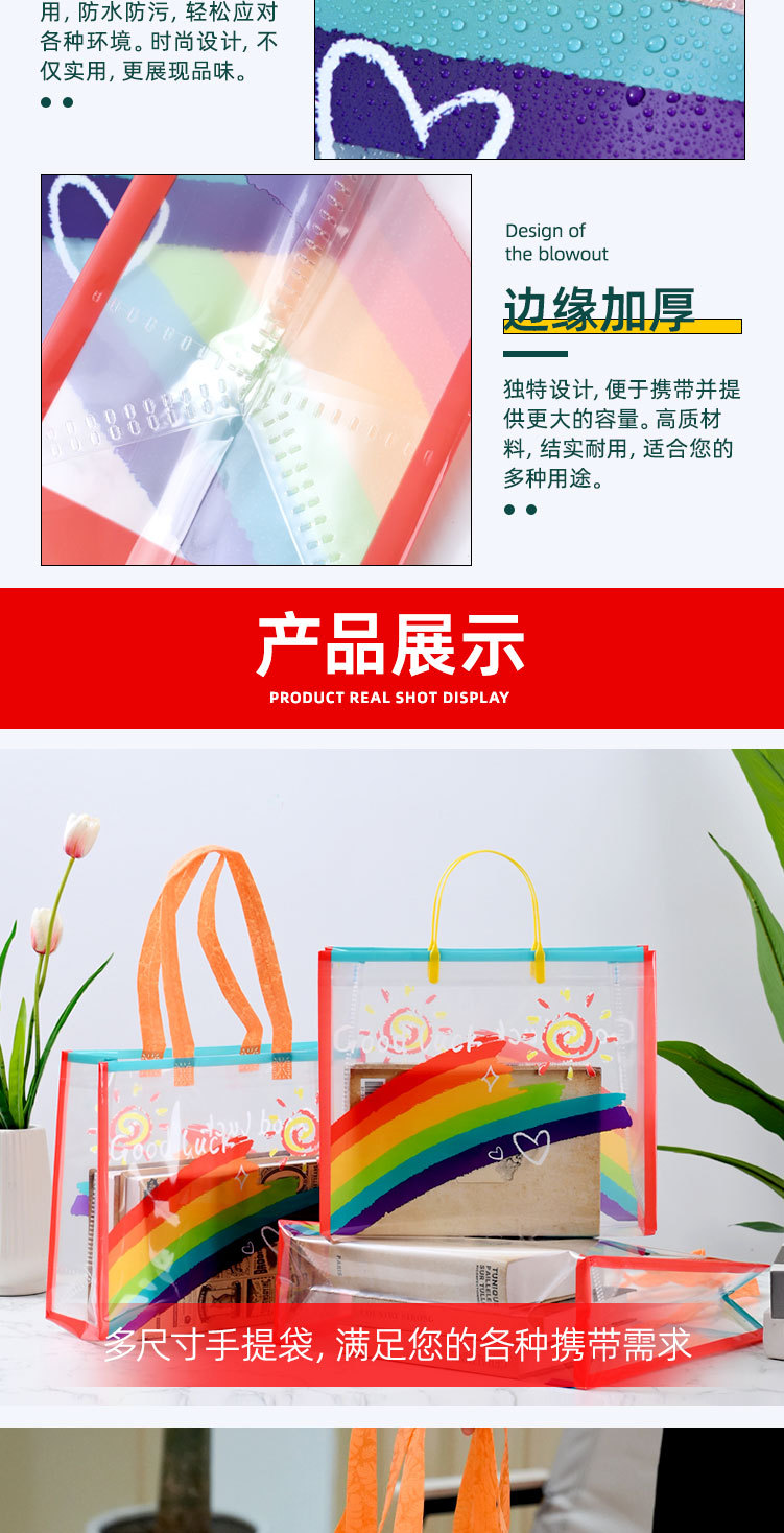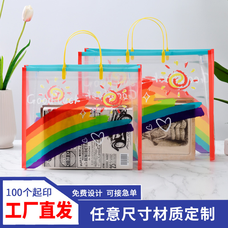투명 선물 가방 PVC 토트백 무지개 의류 매장 가방 두꺼운 방수 쇼핑백 인쇄 로고 도매