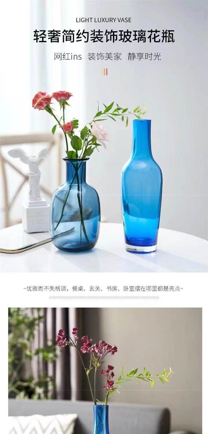 고급 유리 꽃병 작은 구경 장식 거실 빛 고급 집 꽃꽂이 높은 모양의 장식 창조적 인 가구스토어 가기
