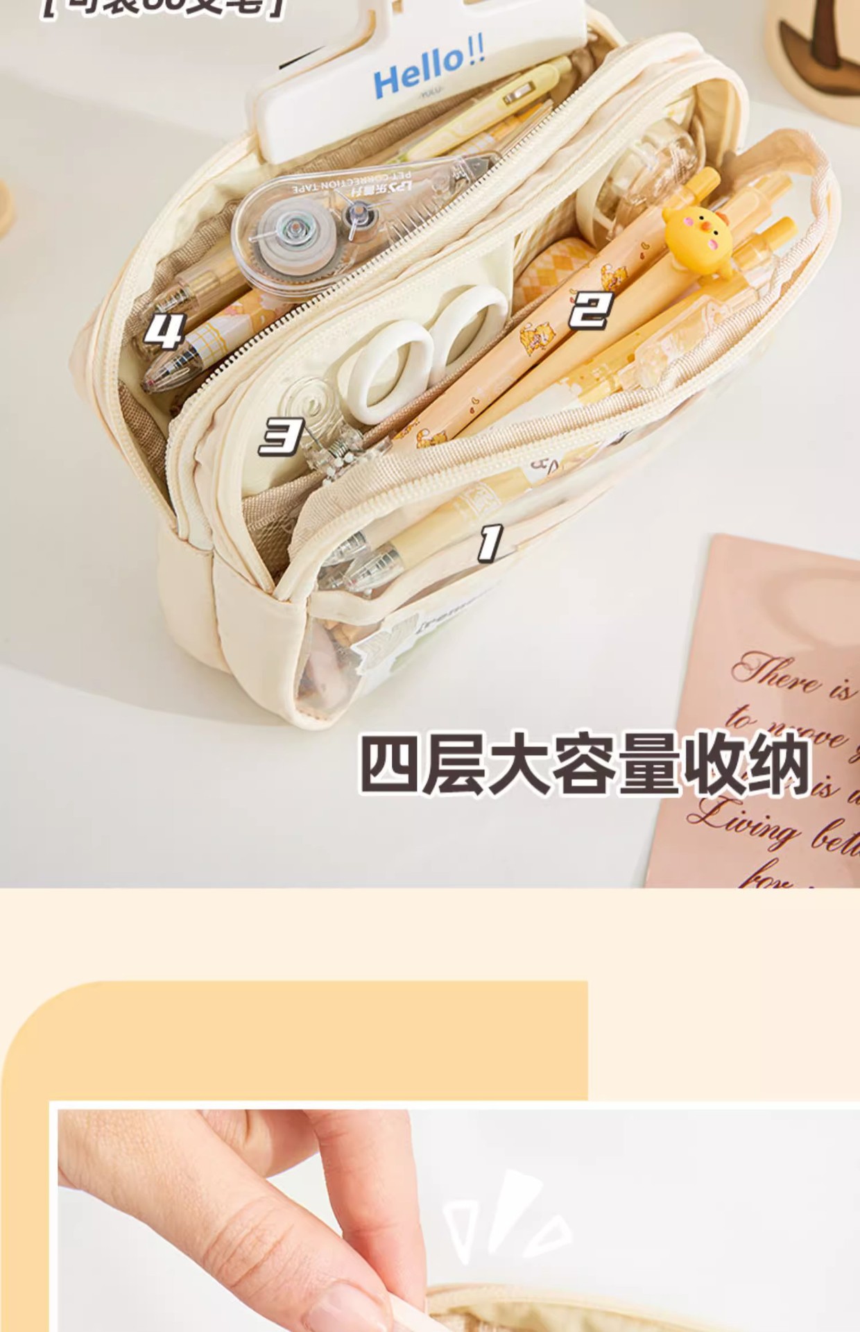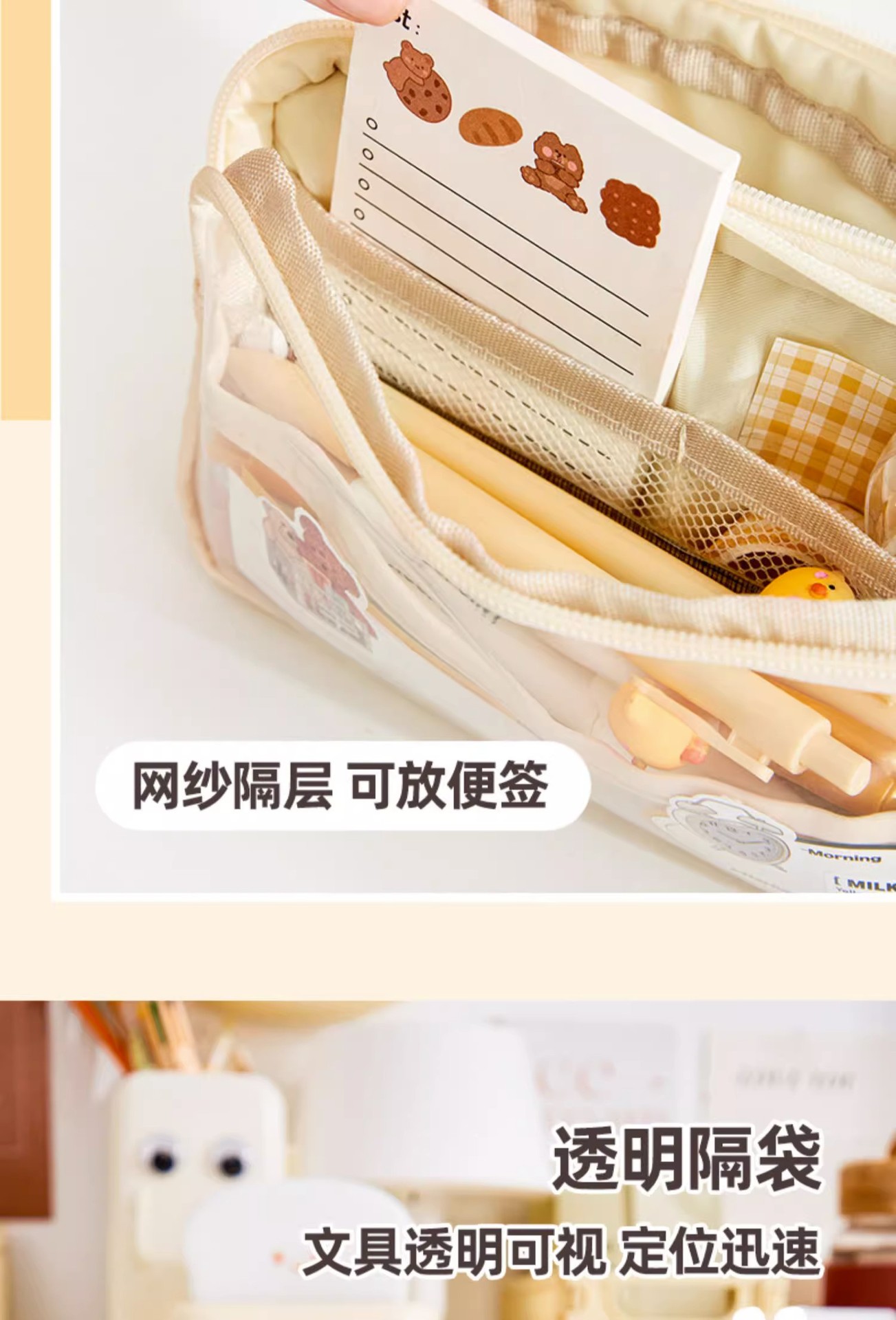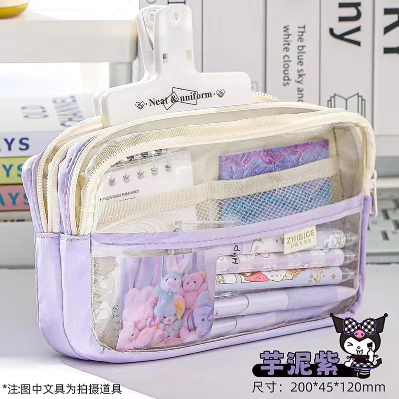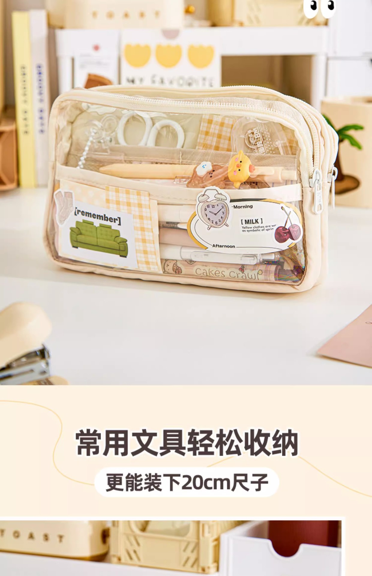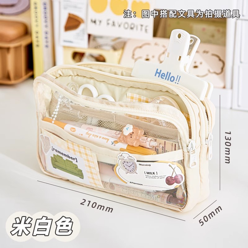 스타일 틈새 시장에서 높은 외관 가치 연필 가방 간단한 대용량 문구 가방 초등학교 소녀 다층 투명 필통스토어 가기