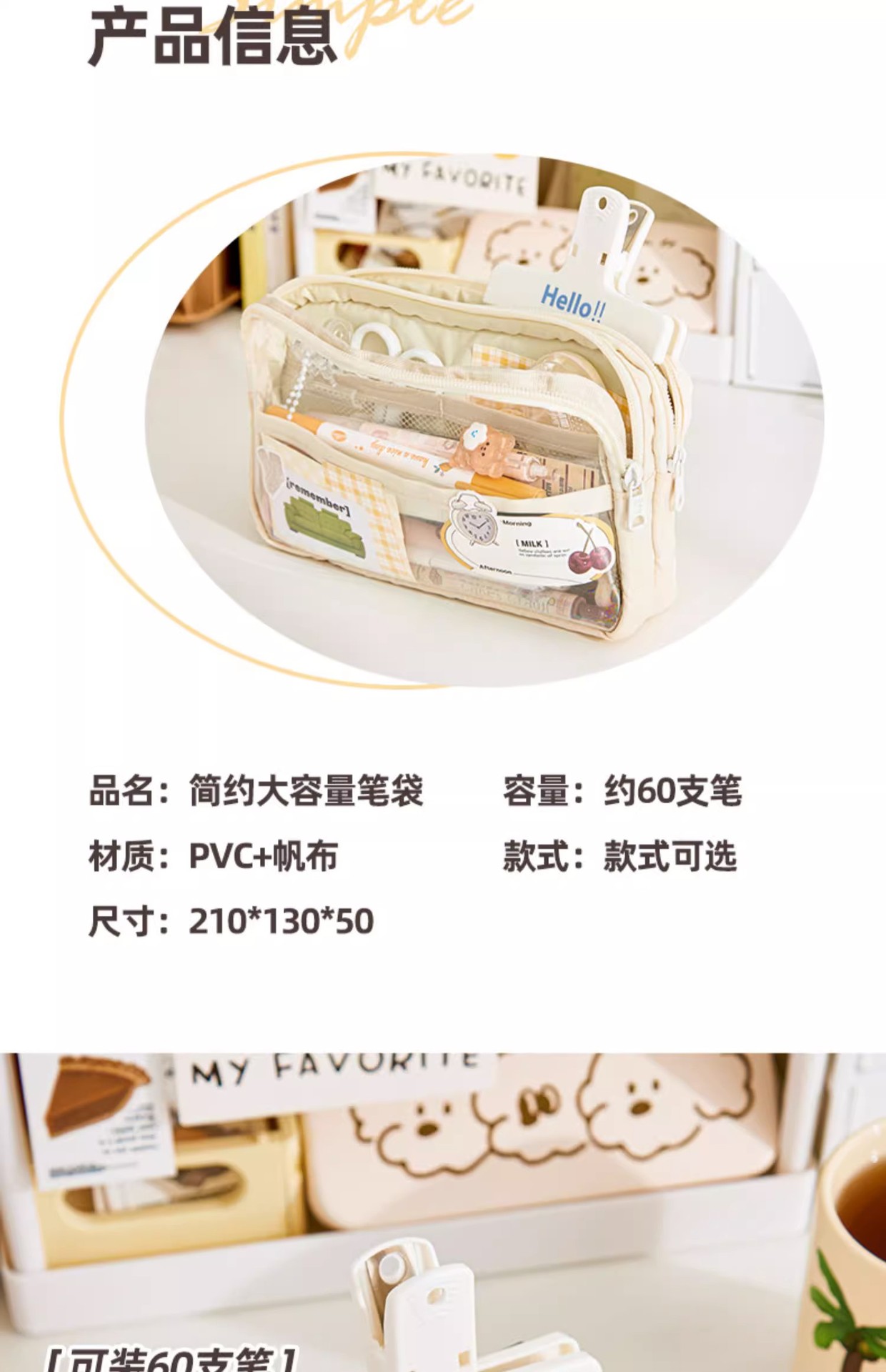 스타일 틈새 시장에서 높은 외관 가치 연필 가방 간단한 대용량 문구 가방 초등학교 소녀 다층 투명 필통