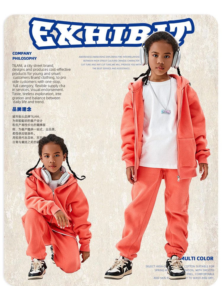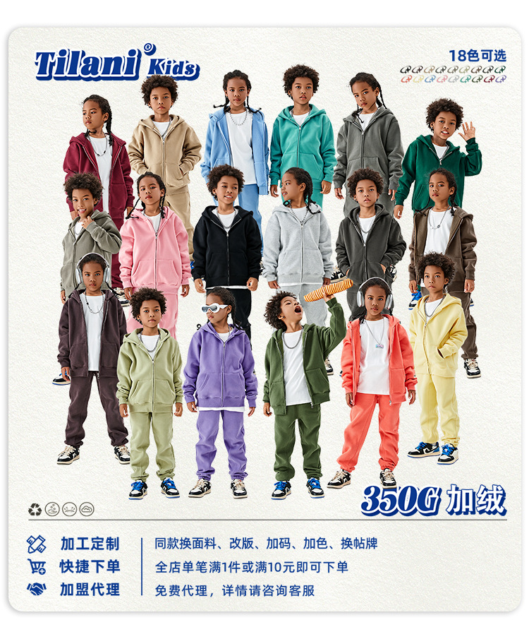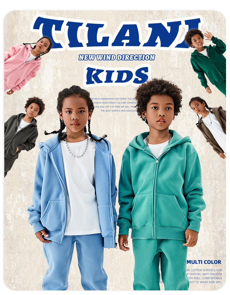 TILANI 아동복 25AW 고품질 350G 벨벳 두꺼운 지퍼 정장 스웨트 셔츠 소년 소녀 정장 버전 2.0