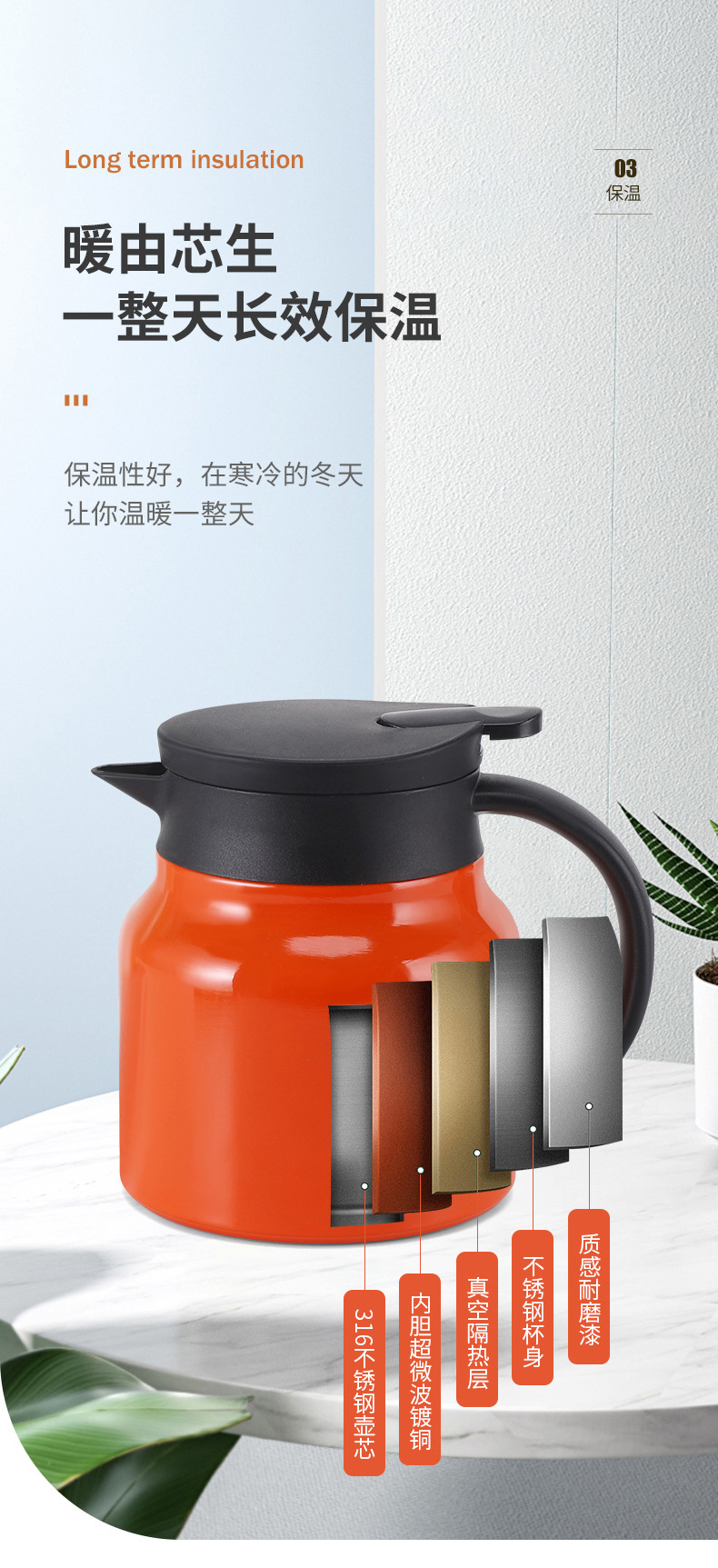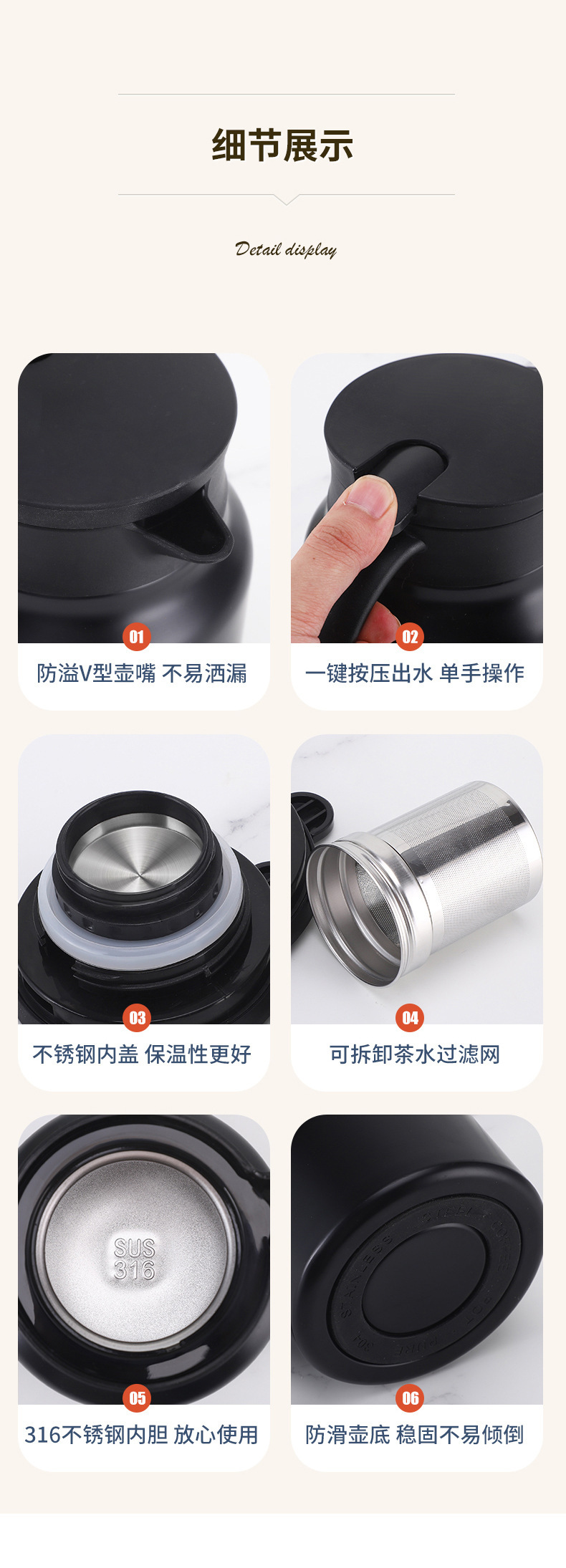 316 스테인리스 스틸 차 주전자, 가정용 차 주전자, 차 물 분리형 보온 주전자, 대용량, 냉침차 주전자, 도매